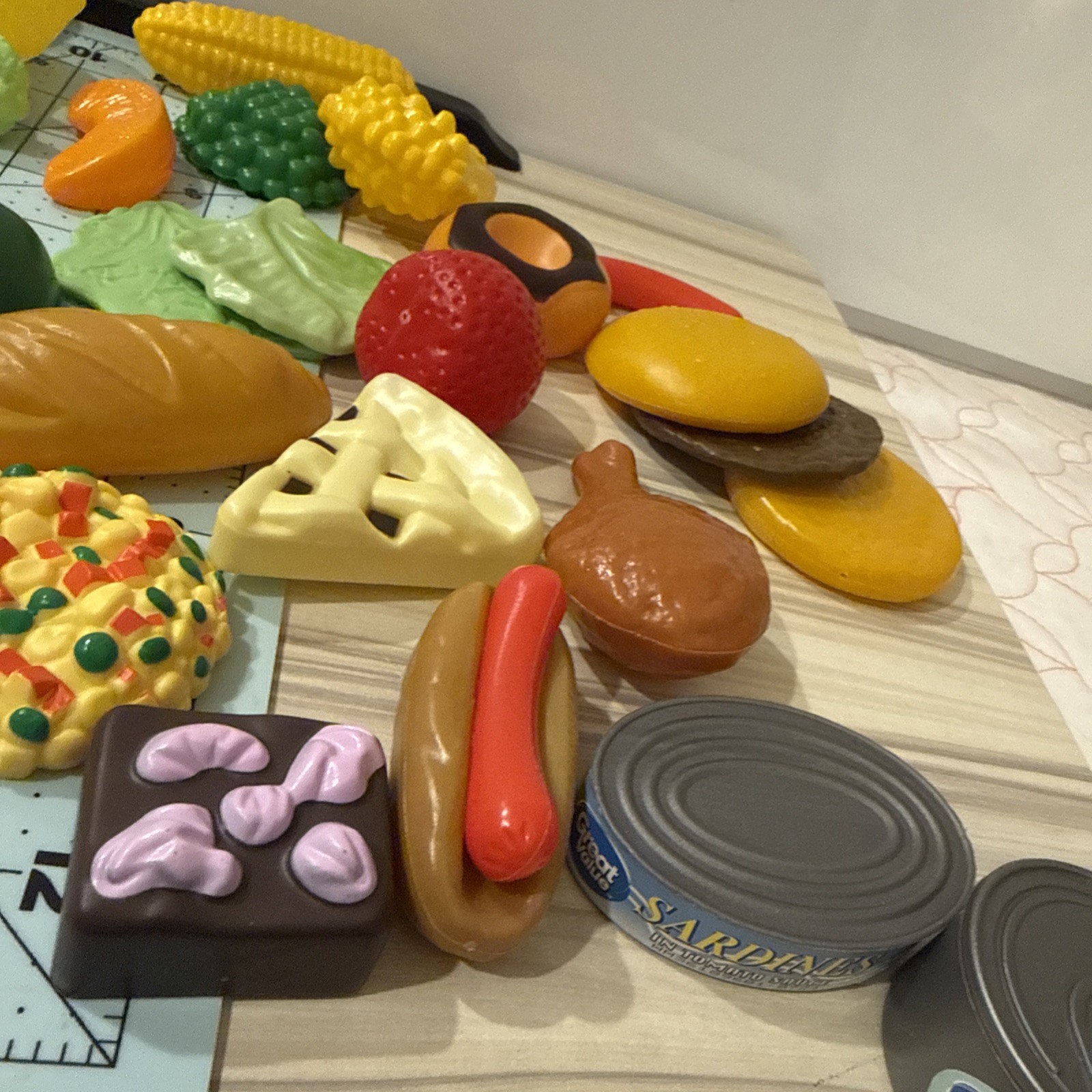 Lot of Pretend Play Food Fruits Vegetables Plastic Donut Hotdogs Hamburger Fries