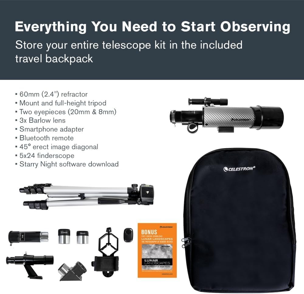 Celestron Travel Scope 60DX Portable Refractor Telescope 60mm Aperture, Fully-