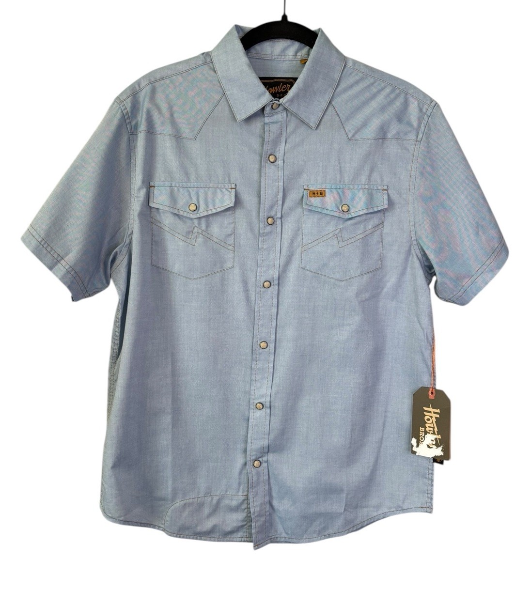 NWT Howler Bros H Bar B Snapshirt Small S Faded Blue Oxford Short Sleeve Western