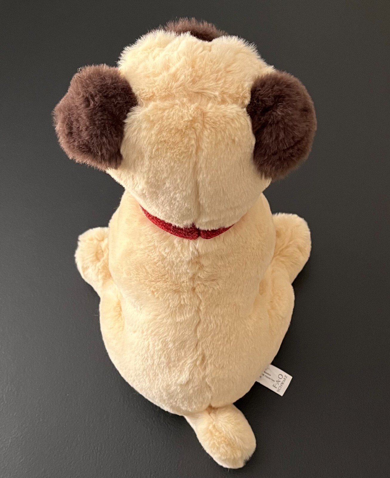 FAO Schwarz 12 Plush Tan Pug Puppy Dog Soft Stuffed Toy Lovey 2022 Red Collar