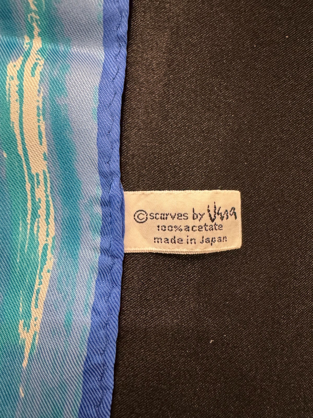 Vera Neumann Scarf Rectangular Vintage Blue Turquoise Floral MOD 43 x 14 Silky
