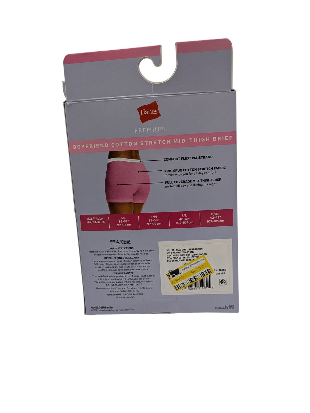 Hanes Size 7/L Premium Boyfriend Cotton Stretch Mid-Thigh Briefs 4-Pack