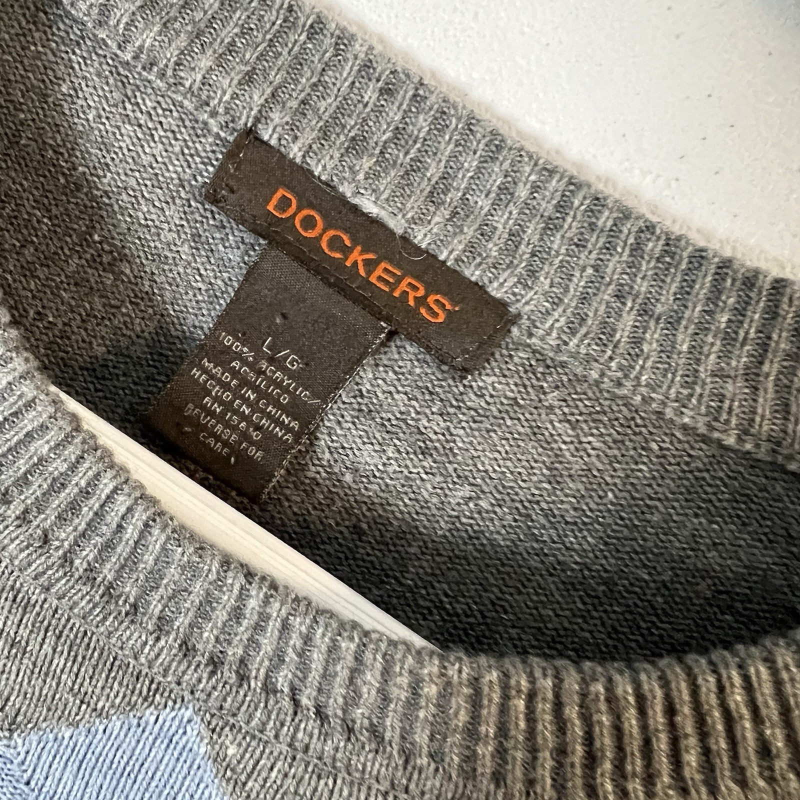 как выглядит Dockers Sweater Mens L Large Gray Blue Argyle Diamonds Longsleeve фото