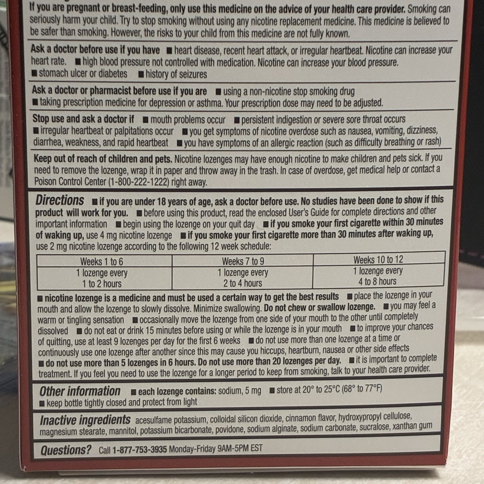 CVS Health Nicotine Mini Lozenge 108 4mg Cinnamon Sugar Free Stop Smoking Aid