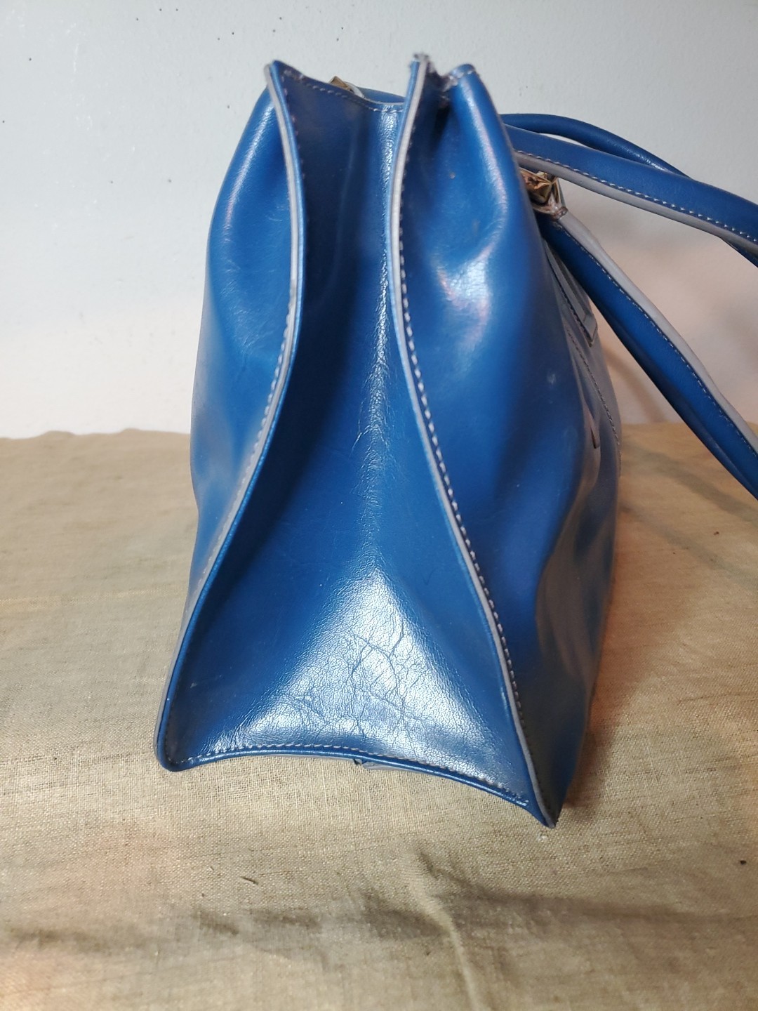 Liz Claiborne Blue 3 Compartments Color Purse Vintage Look Leather