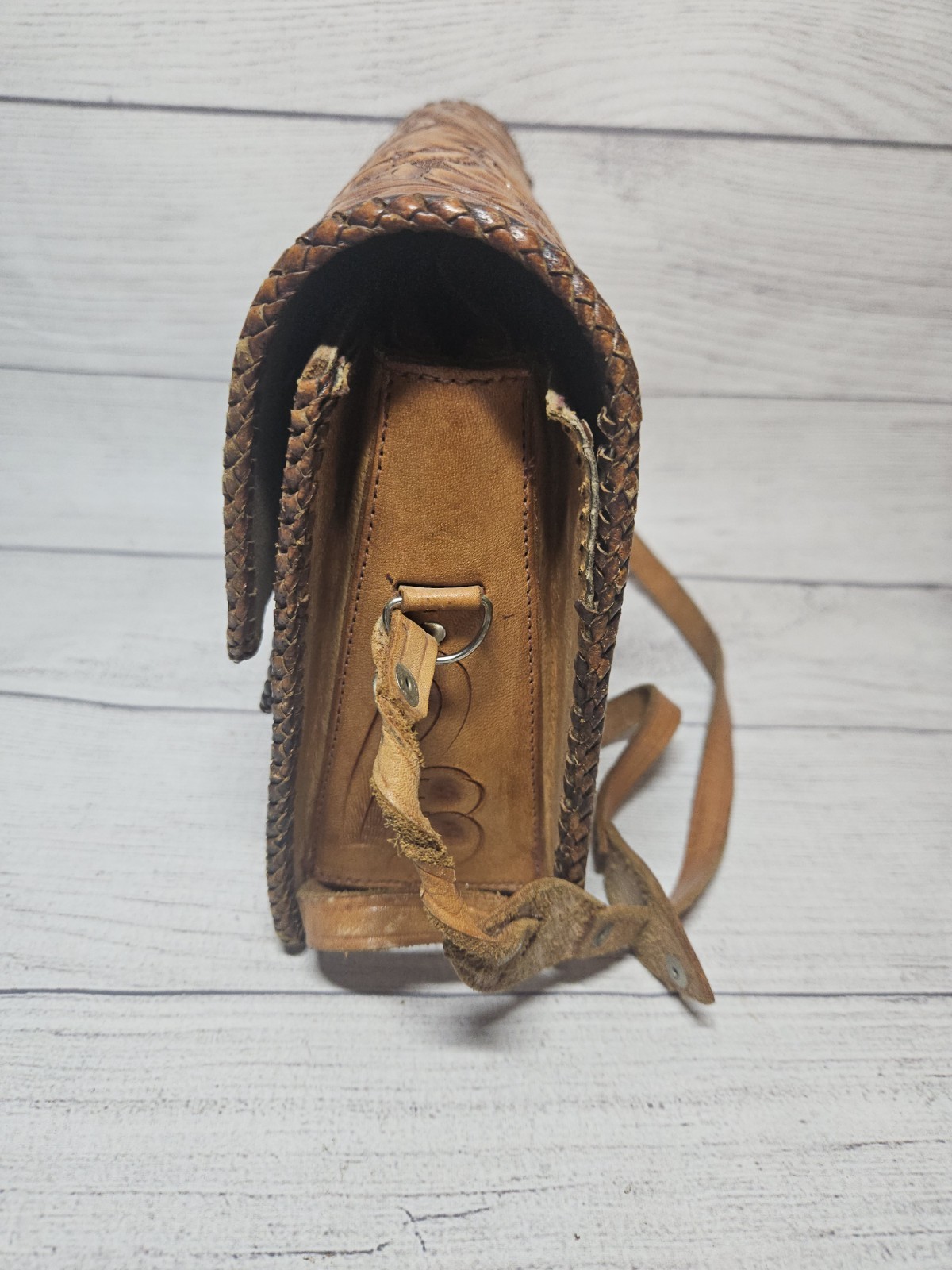 как выглядит Vintage Hand Tooled Leather Purse Handbag - 11.5" - Floral, Country Design фото