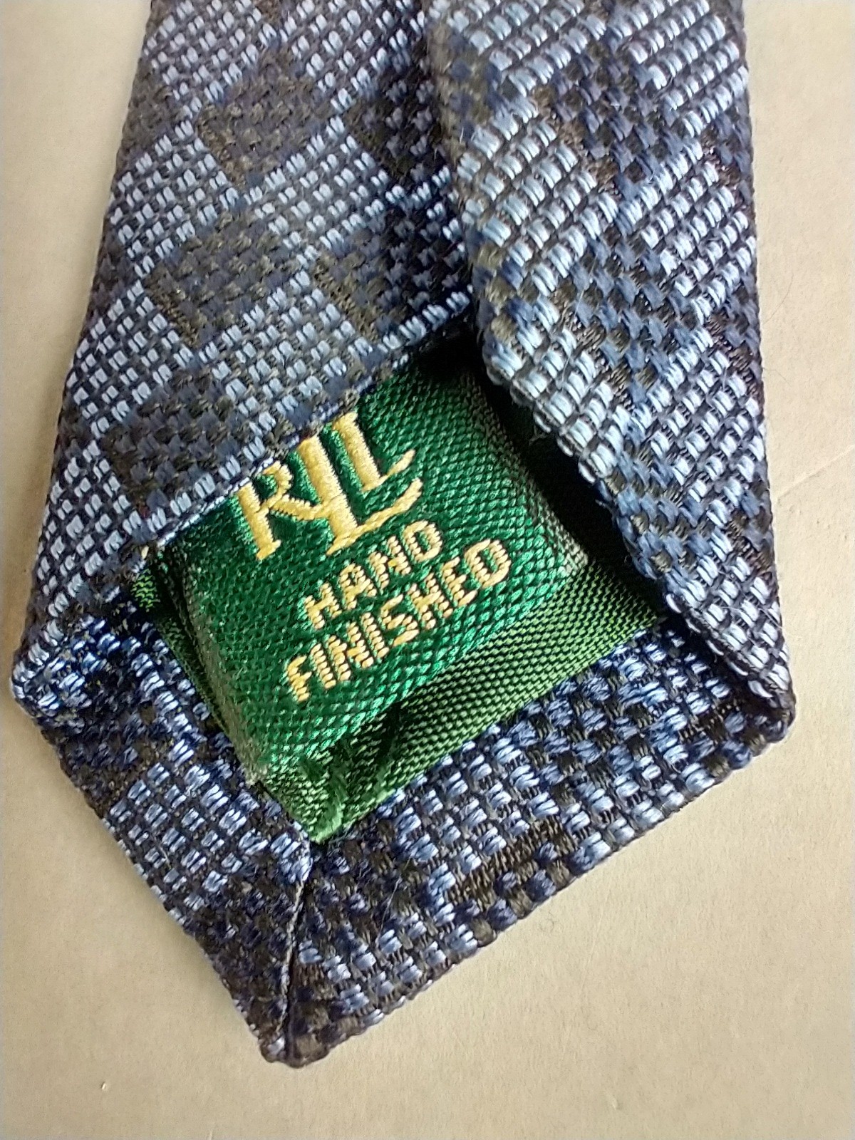 LRL lauren ralph lauren Tie Blue Navy Jacquard Silk Geometric Necktie Check