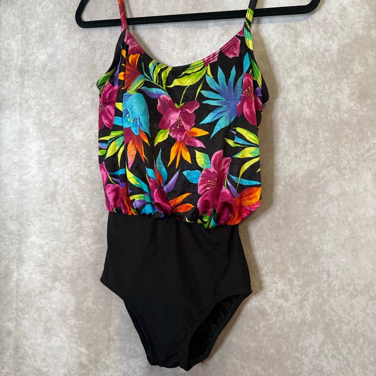 как выглядит Vintage 90s Longitude Floral Hawaiian Blouson One Piece Swimsuit Womens Size 8 фото