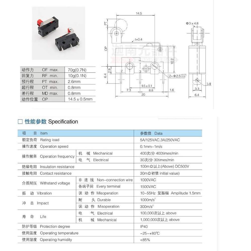 HiLetgo 10pcs Micro Limit Switch KW12-3 AC 250V 5A SPDT 1NO 1NC Micro Switch Nor