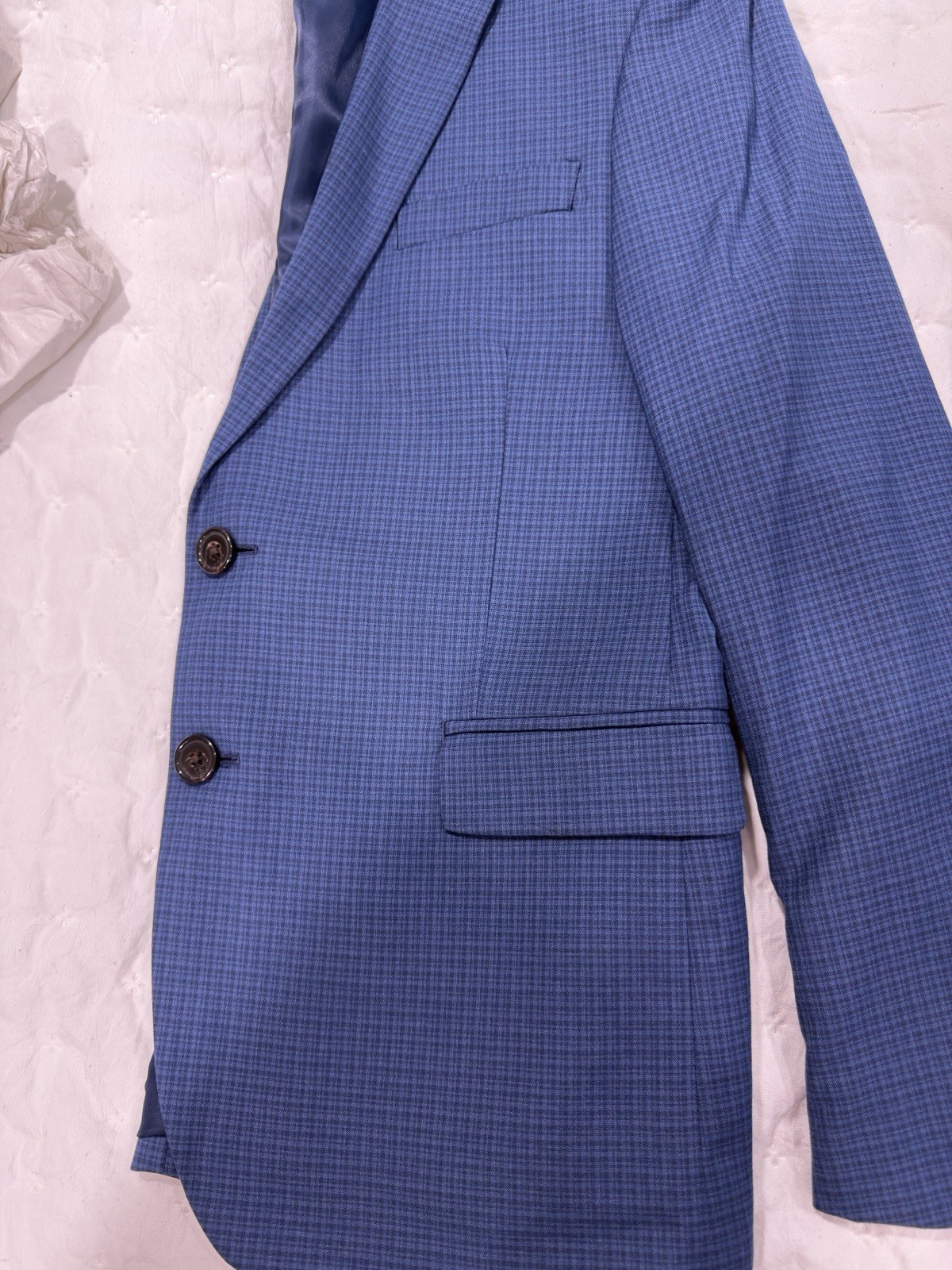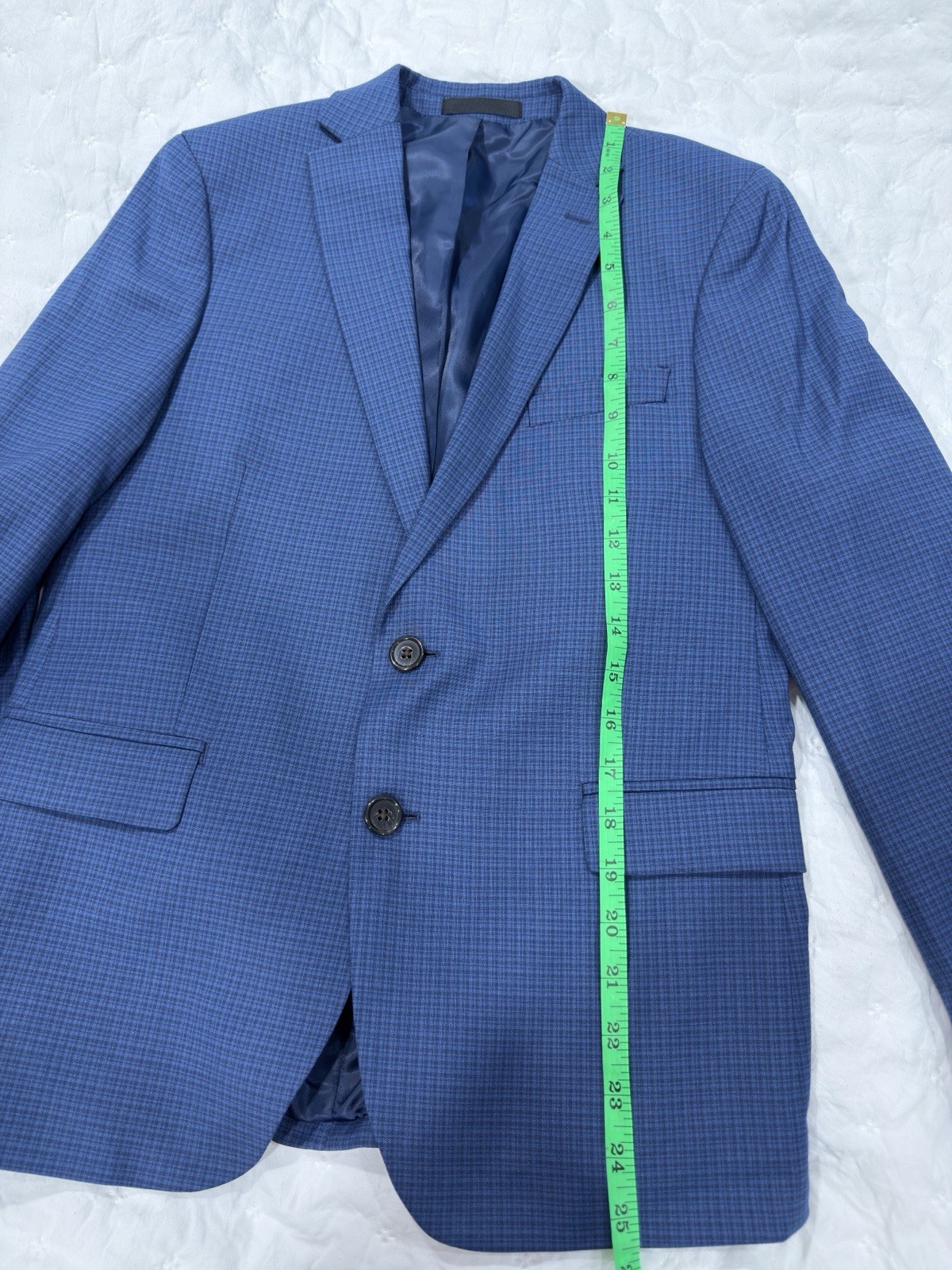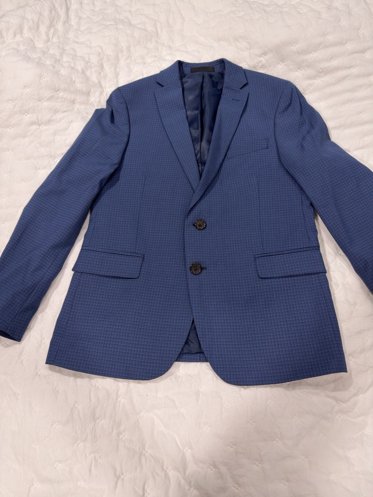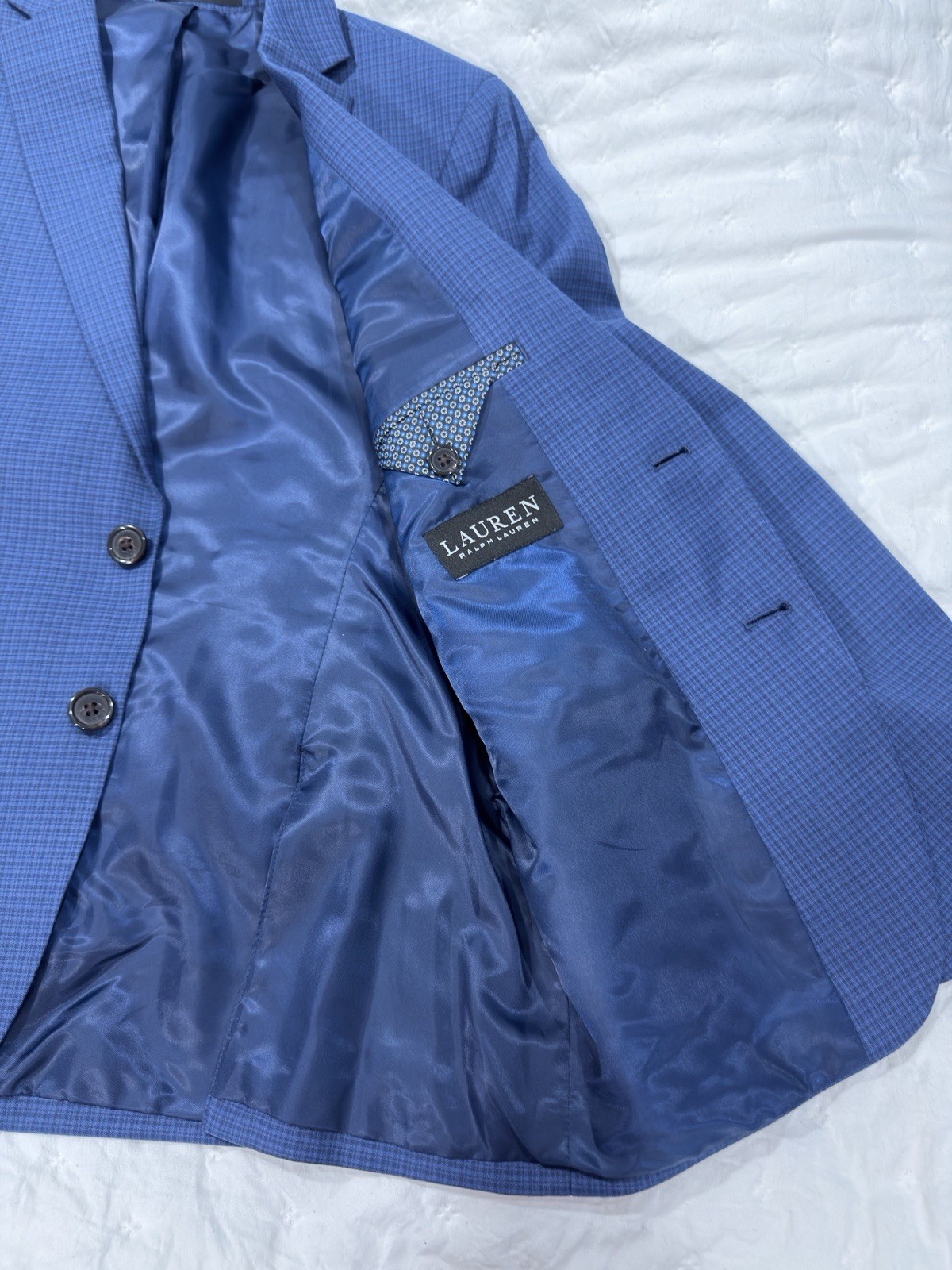 как выглядит Ralph Lauren Boys Suit Set Sz 12husky Navy -light Blue Plaid Used Exc Condition фото