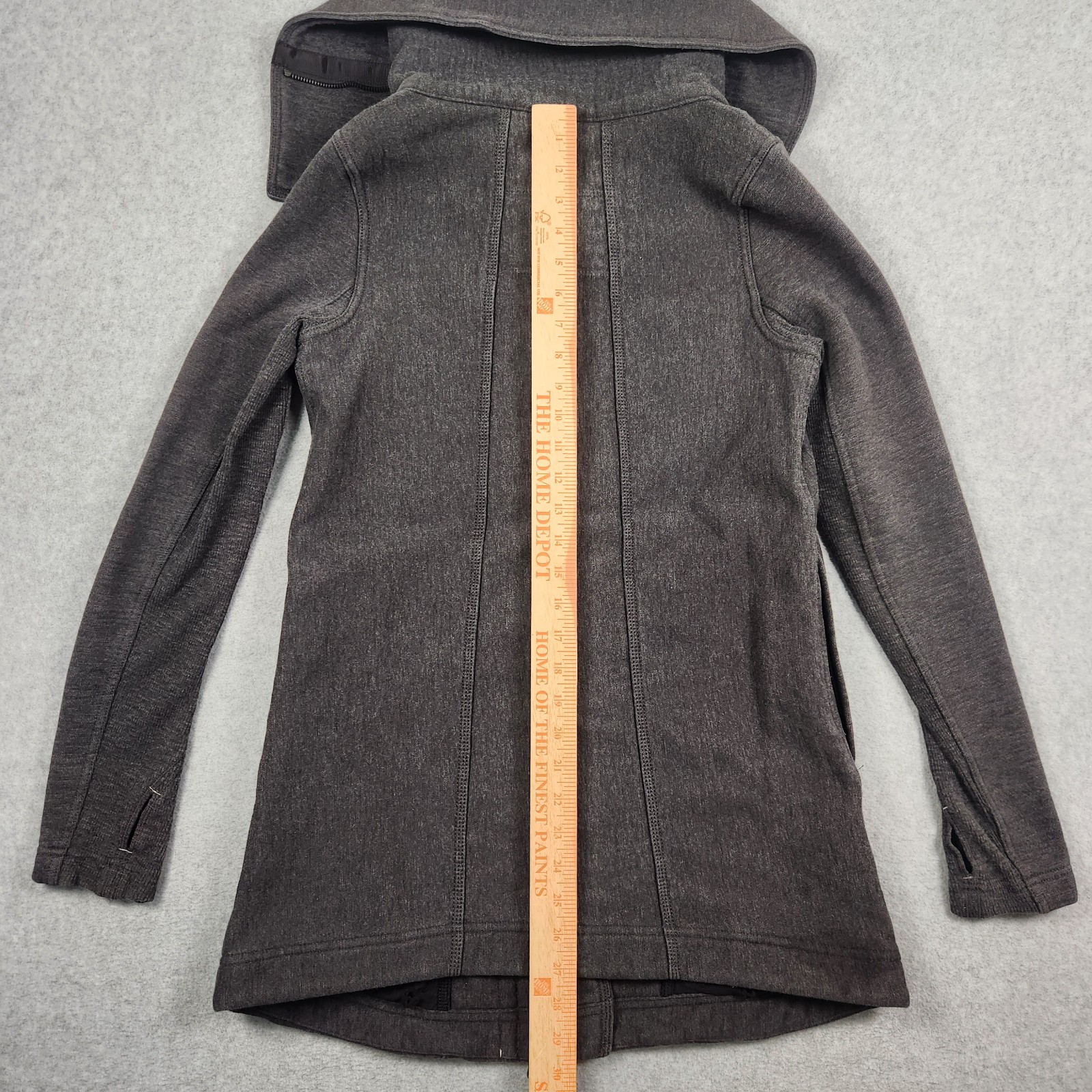 как выглядит Lululemon Jacket Womens 4 Virasana Wrap Blanket Moto Asymmetric Long Shawl Gray фото