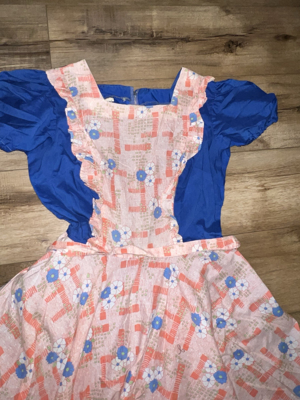 как выглядит Vntg Womens M Blue And Floral Apron Square Dance Clogging Rockabilly Dress фото