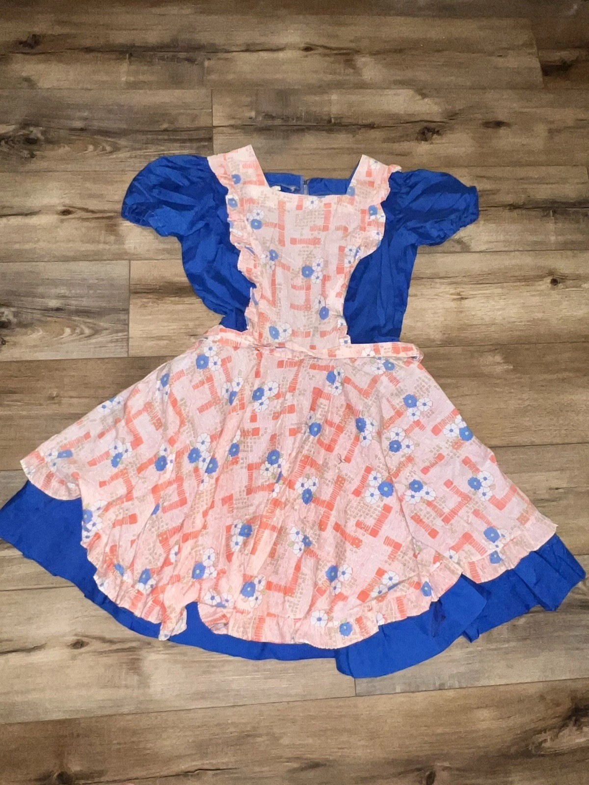 Vntg Women's M Blue And Floral Apron Square Dance Clogging Rockabilly Dress