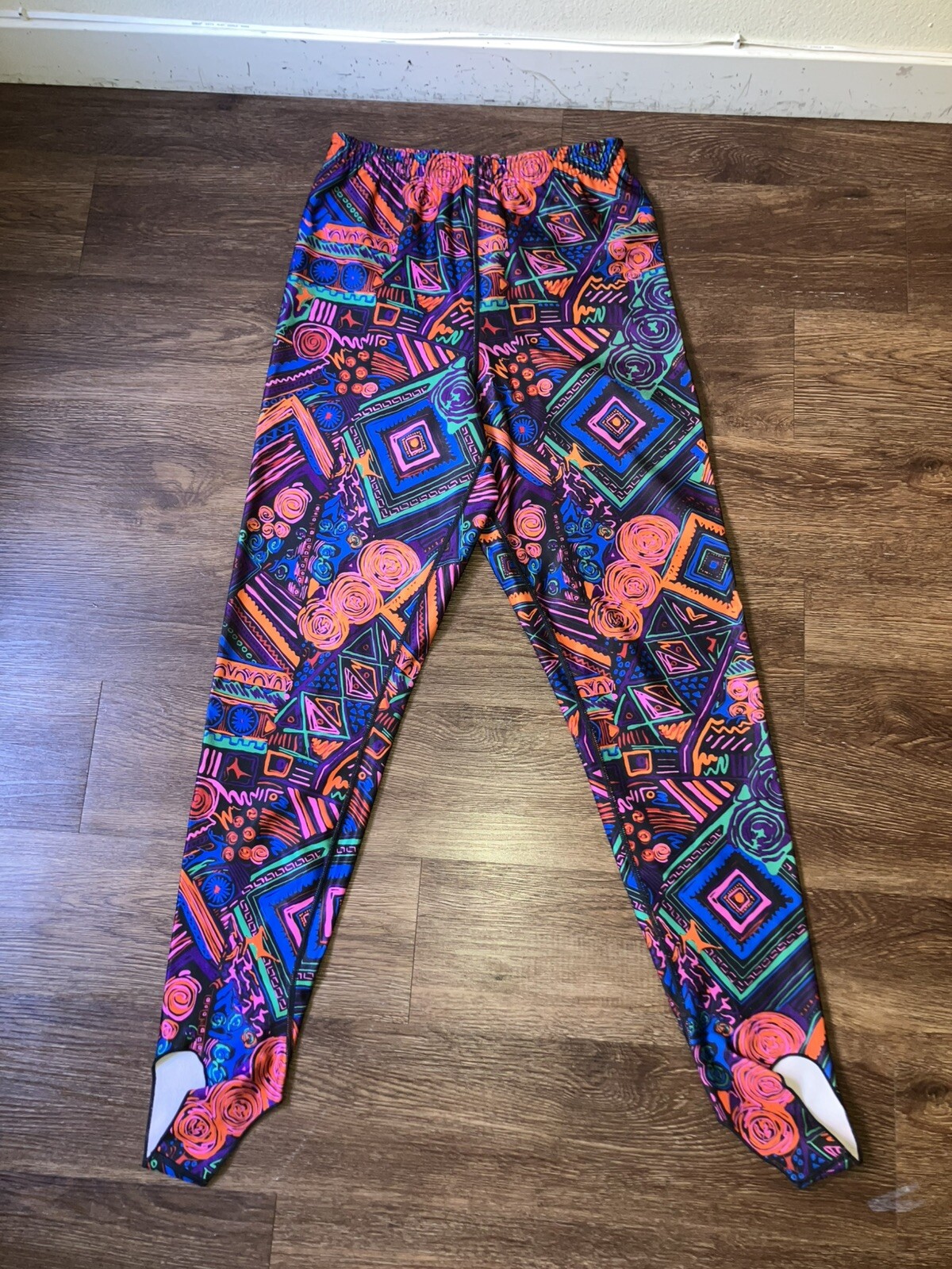 как выглядит Vintage 80s/ 90s Passport Abstract Print Stirrup Pants Brightly Colored XS/S/M фото