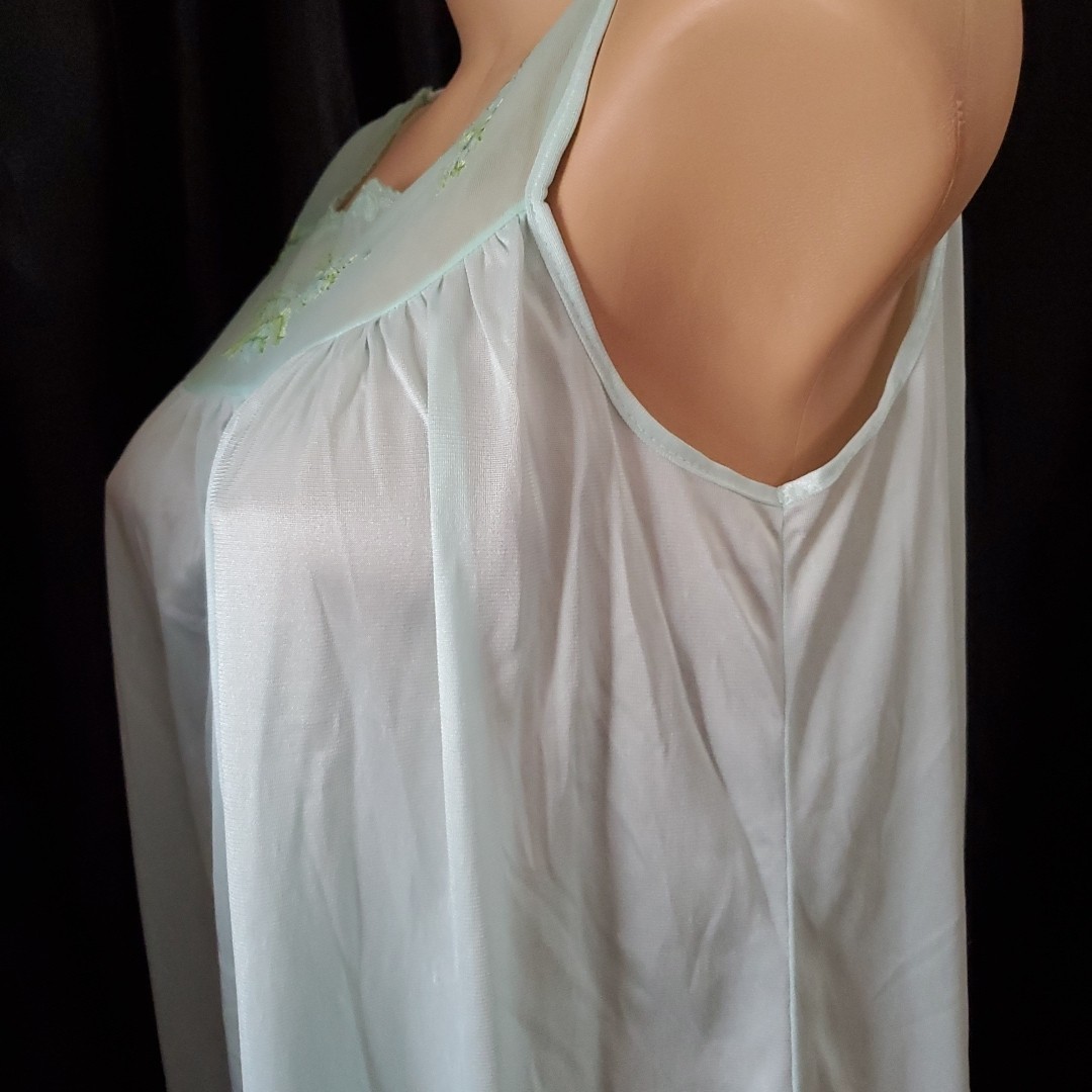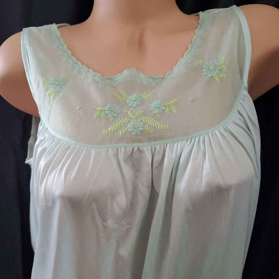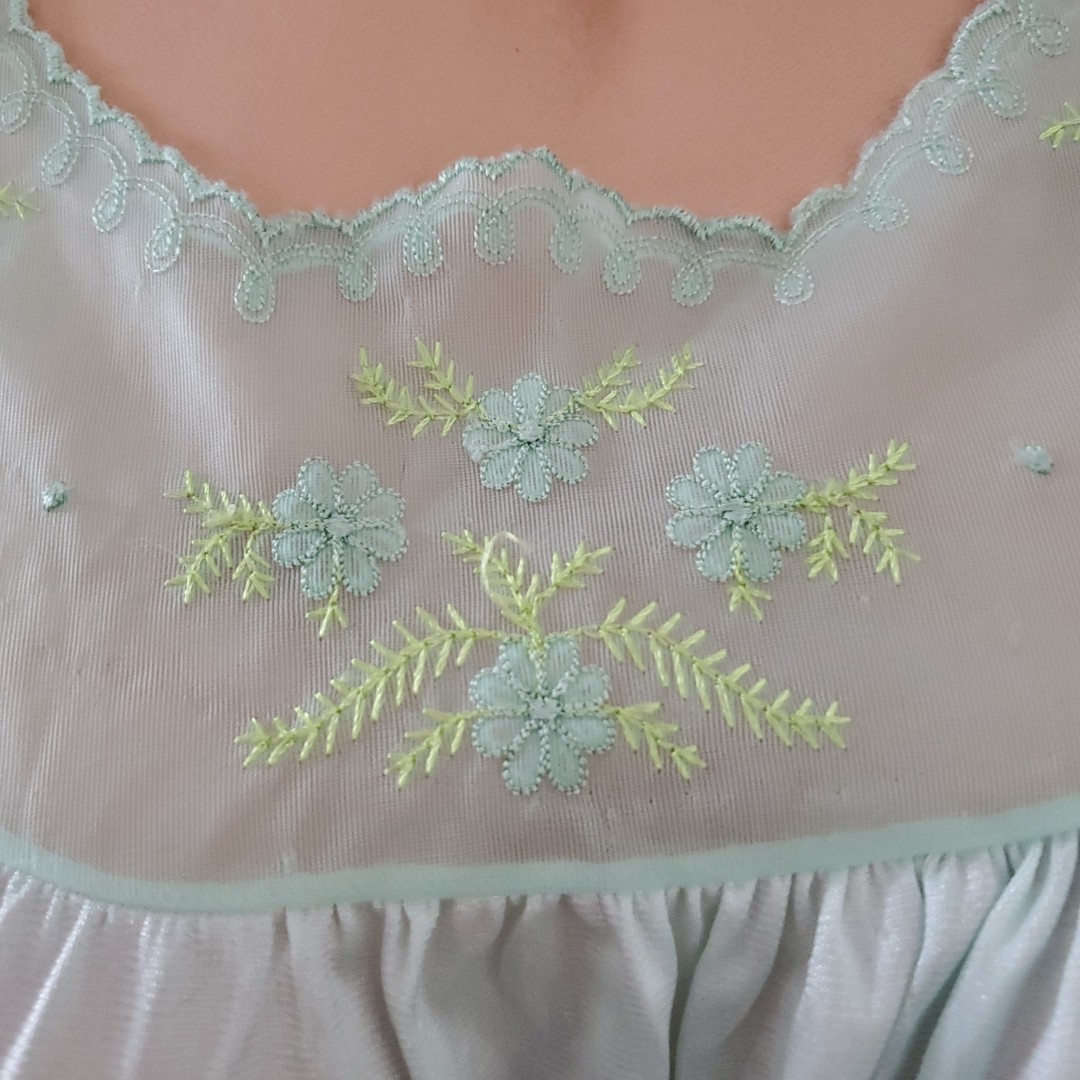 как выглядит Vintage Babydoll Nightgown SEAFOAM GREEN Embroidery Raw Hem MEDIUM LARGE фото