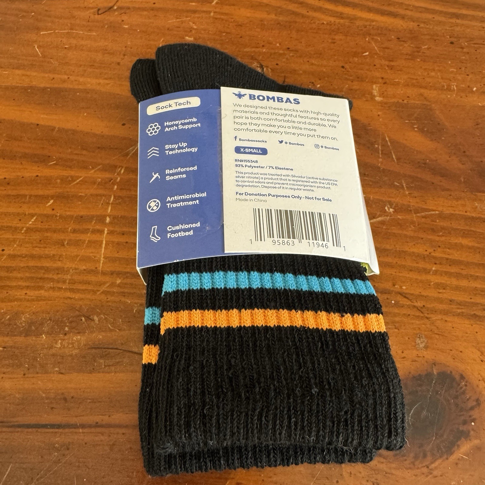 как выглядит NEW BOMBAS Women s/Youth Crew Socks Size XS Original Black Honeycomb Support фото
