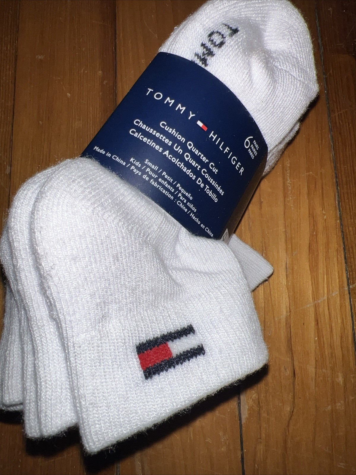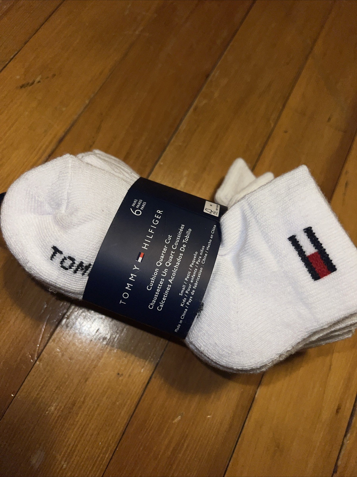 NWT 6-PAIRS PACK TOMMY HILFIGER CHILD SMALL WHITE QUARTER CUT SOCKS SIZE KIDS