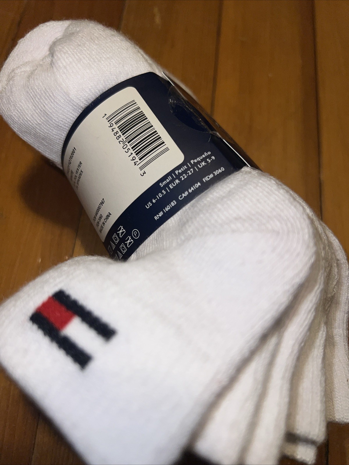 как выглядит NWT 6-PAIRS PACK TOMMY HILFIGER CHILD SMALL WHITE QUARTER CUT SOCKS SIZE KIDS фото
