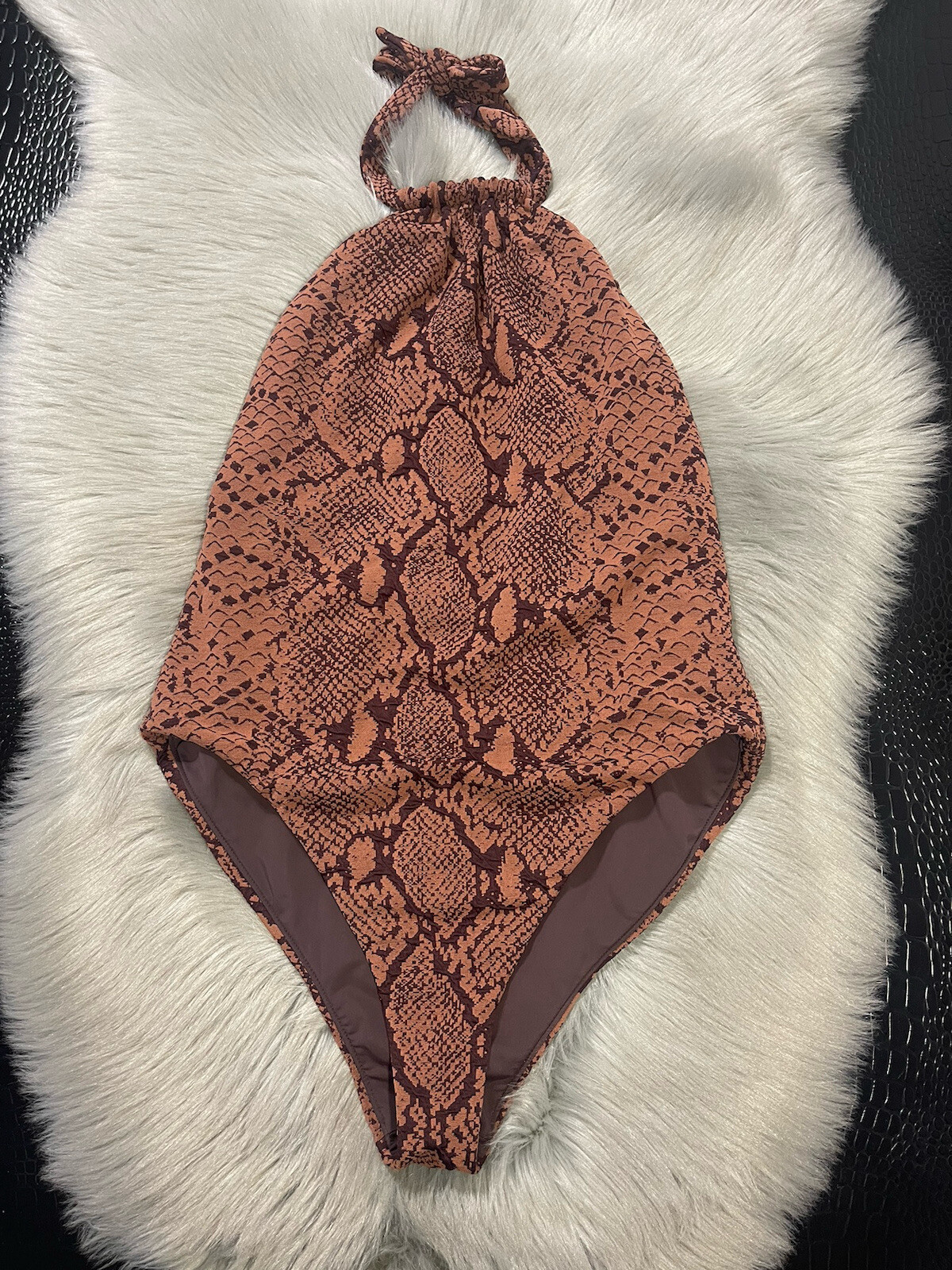 Mara Hoffman Dominique Snake Print Halter One-Piece Swimsuit Large