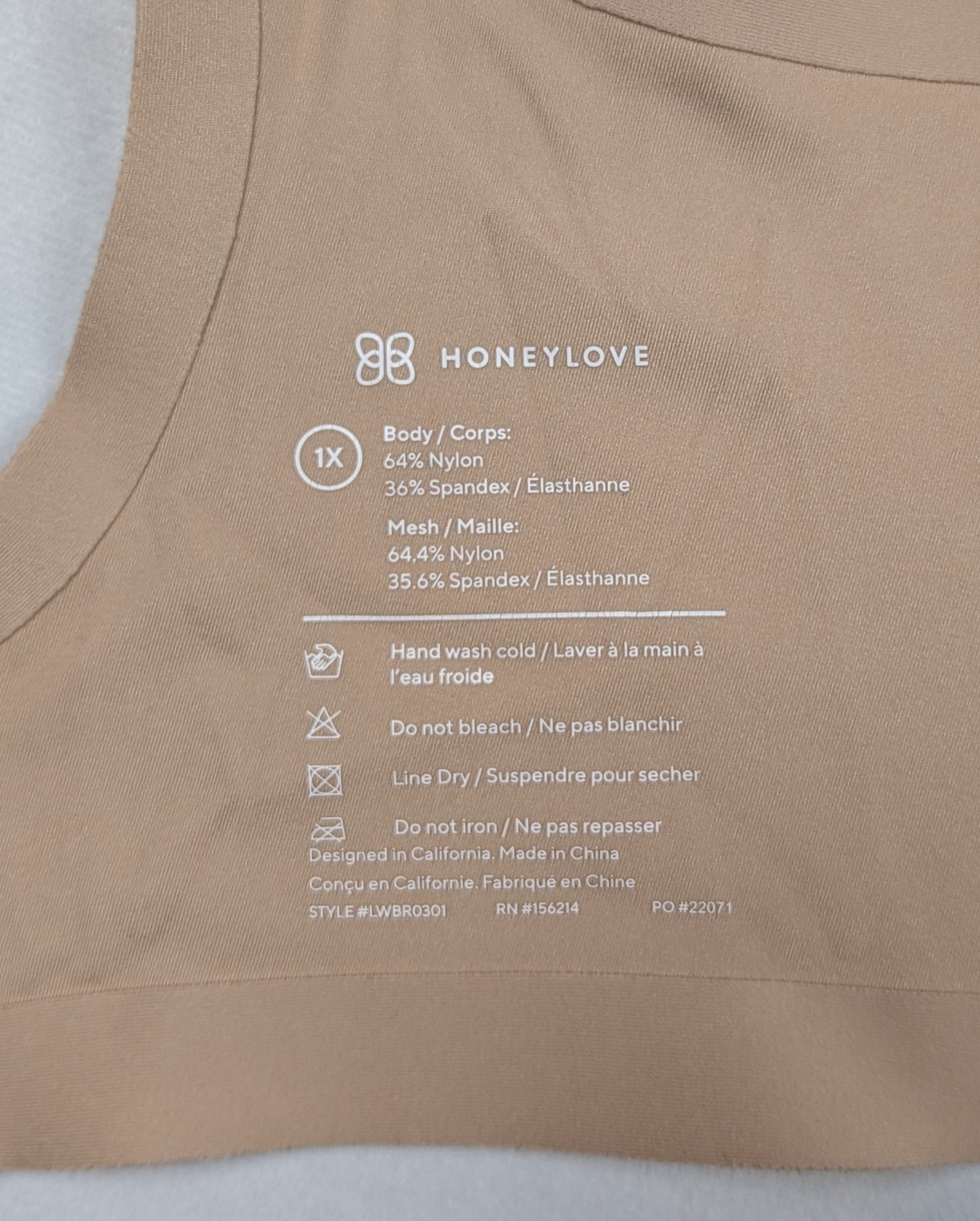 Honeylove Crossover Wireless Bra Sand Size 1X EUC No Signs of Wear Comfort