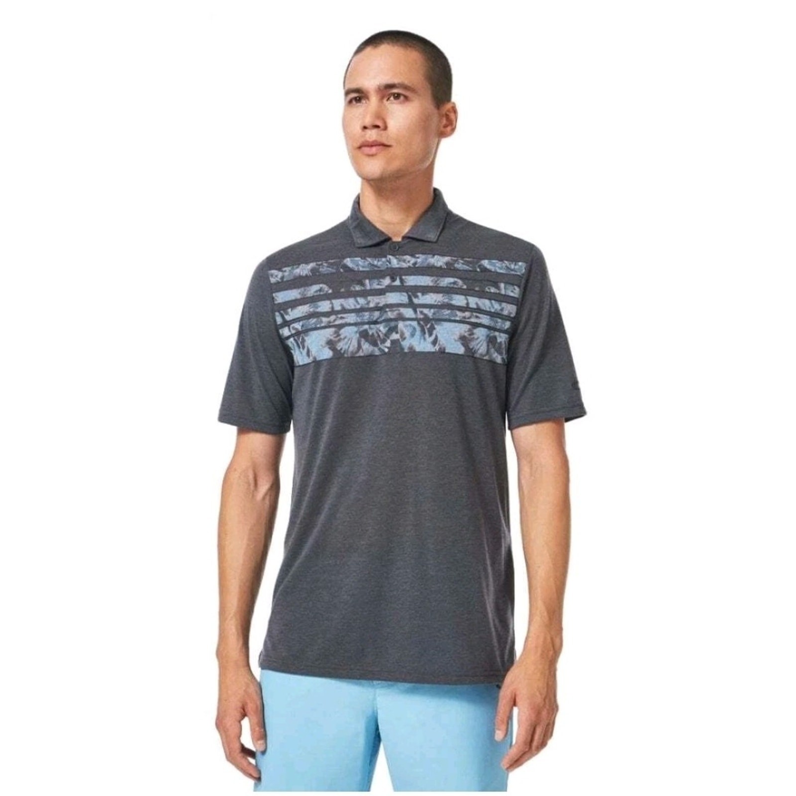 как выглядит Oakley Hydrolix Mens Polo shirt Sz Medium Dark Gray Striped фото
