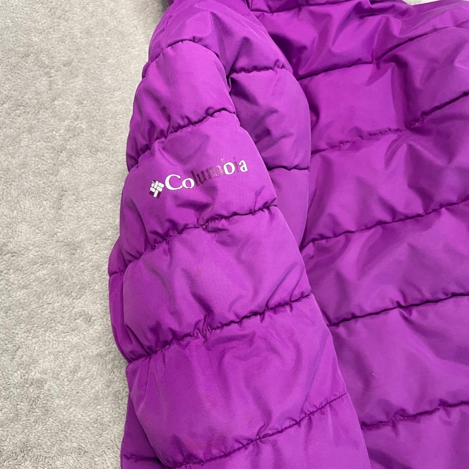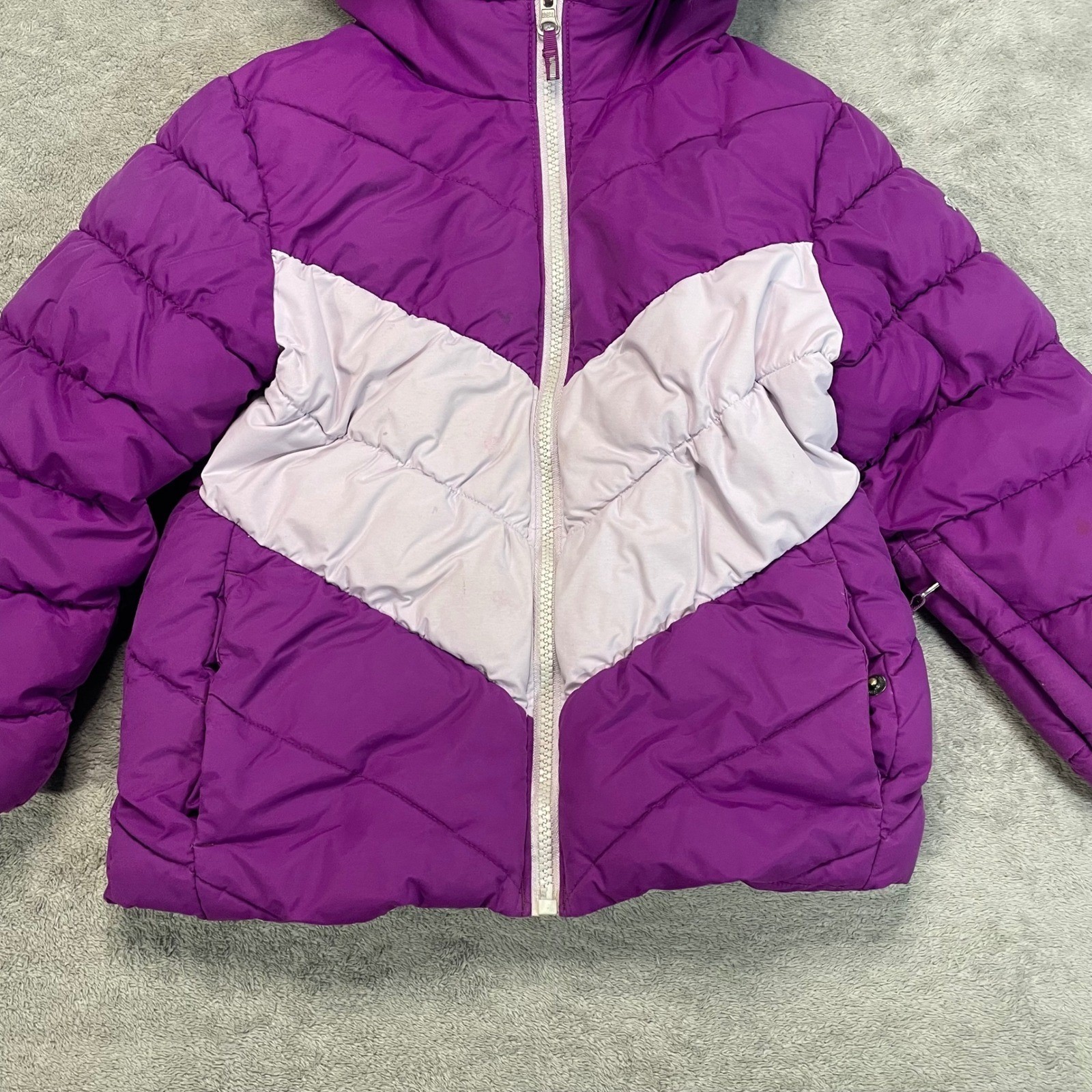 как выглядит Columbia Kids Purple Chevron Jacket Hooded Coat Winter size 6 see measurements фото