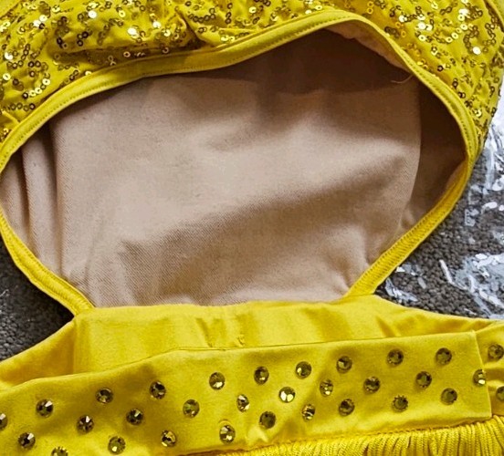 как выглядит Weissman Girls Yellow Fringe Sequin Dance Costume Jazz Tap w/ Hair Pins фото