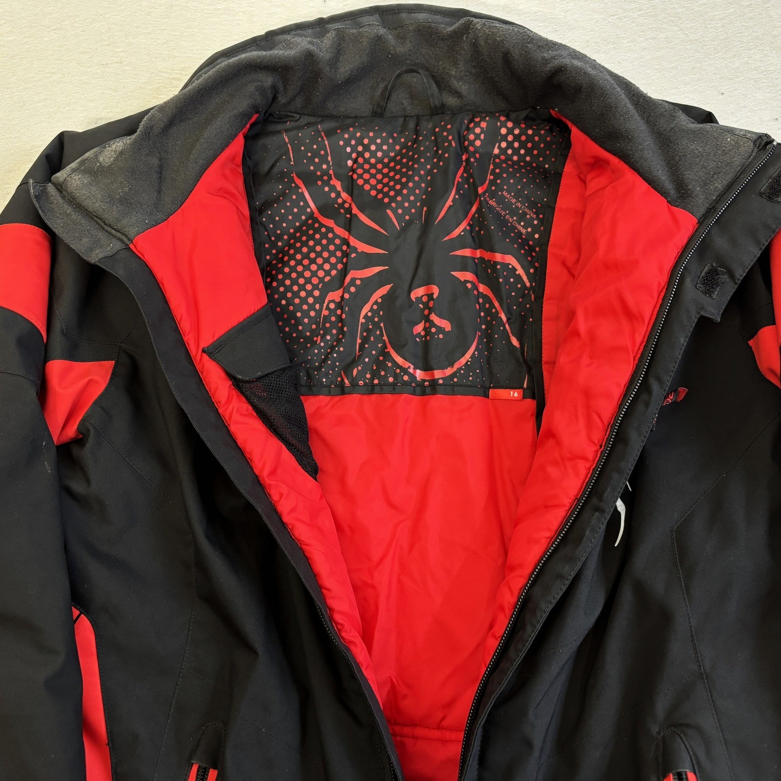 Spyder Kids Ski Snowboard Jacket 16 Black Red Spider Web Logo Boys Winter Youth