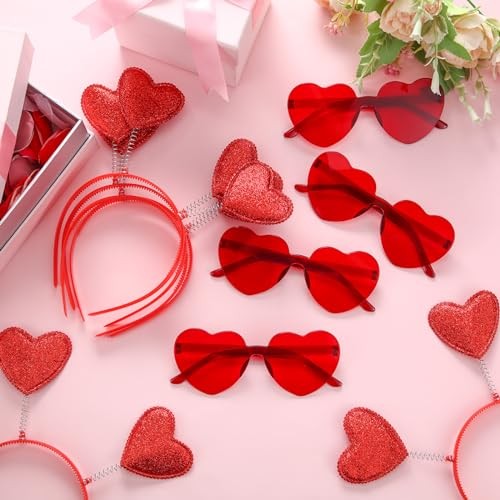 48 Pcs Valentines Heart Head Boppers Headbands and Heart Sunglasses for Red