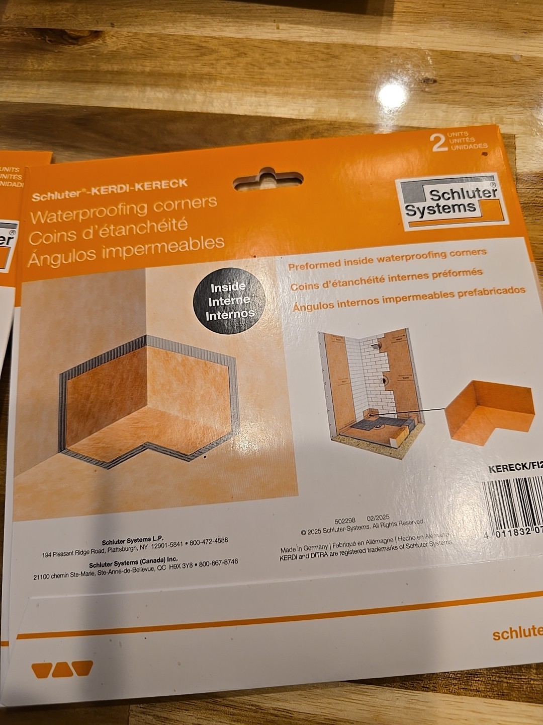 2 PKG Schluter Kerdi-Kereck Inside Corners 2-Pack
