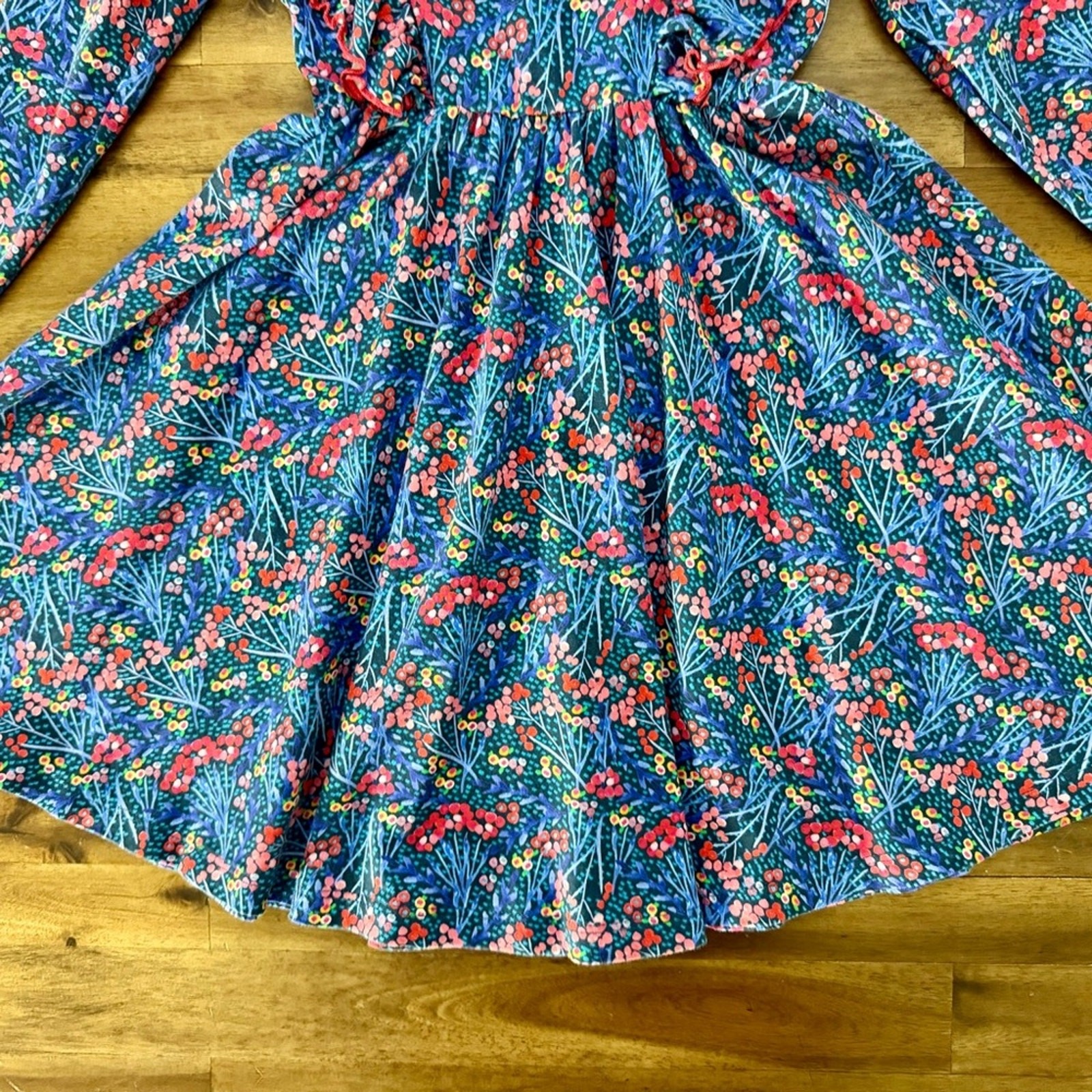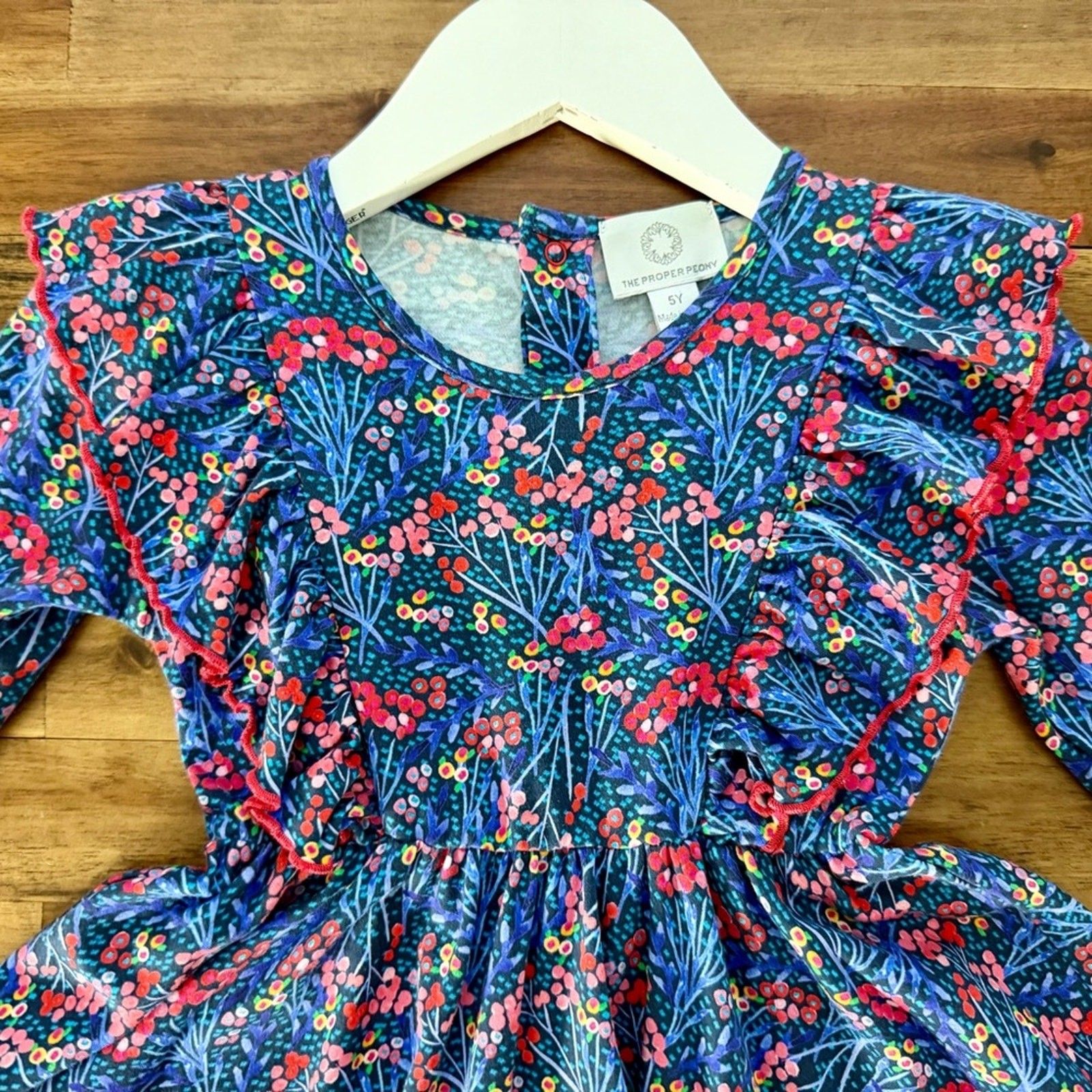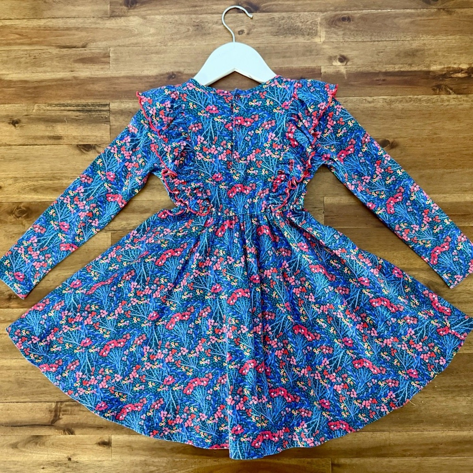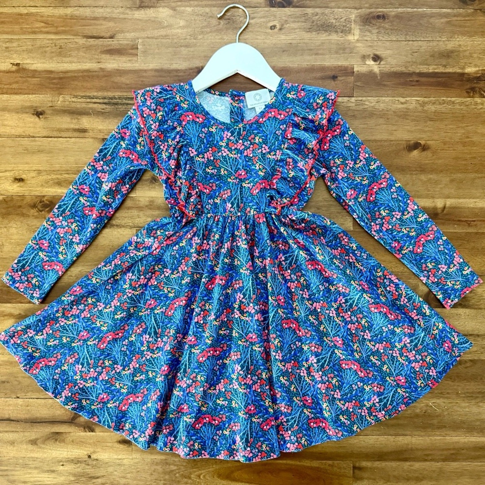 The Proper Peony Margot Pima Long Sleeve Winterberry Floral Twirl Dress 5 Blue