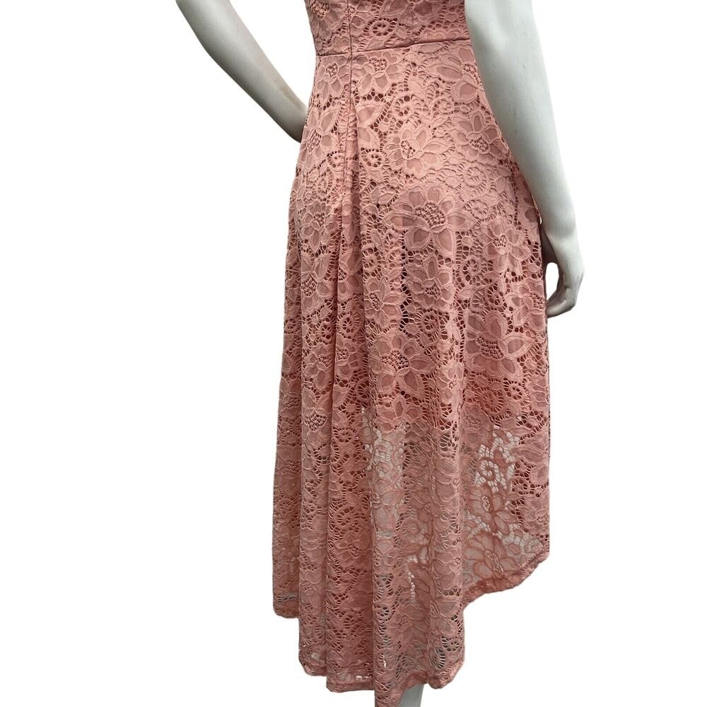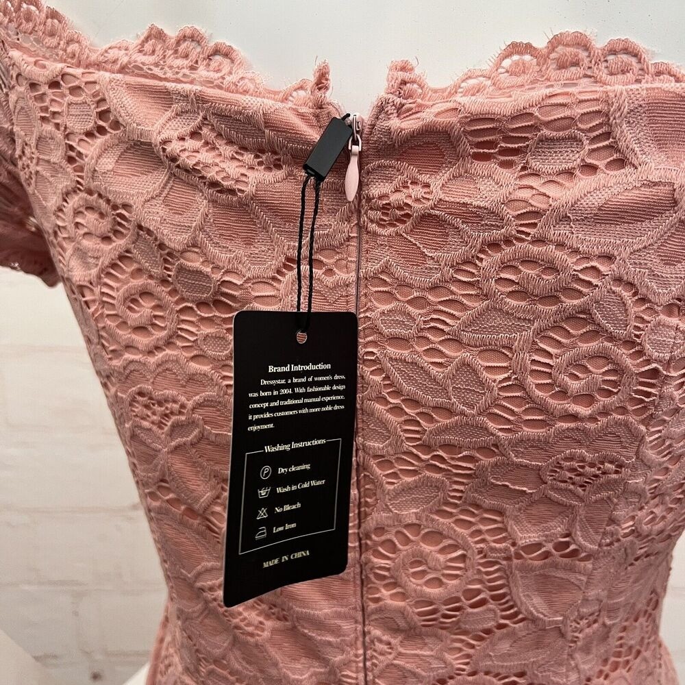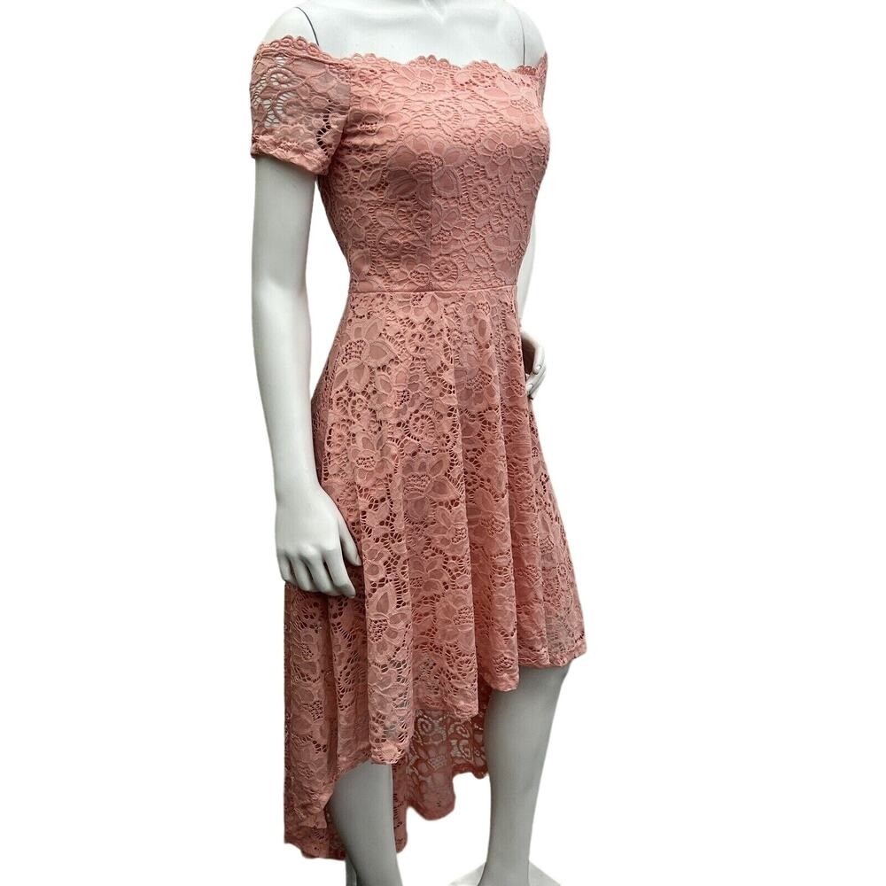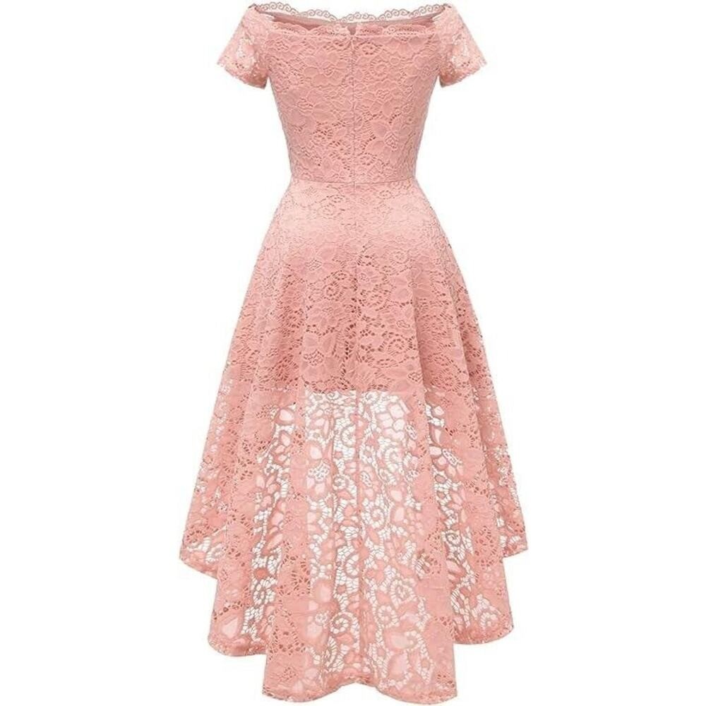 как выглядит Dressystar Women Lace Cocktail Hi-Lo Off Shoulder Bridesmaid Swing Pink Dress M фото