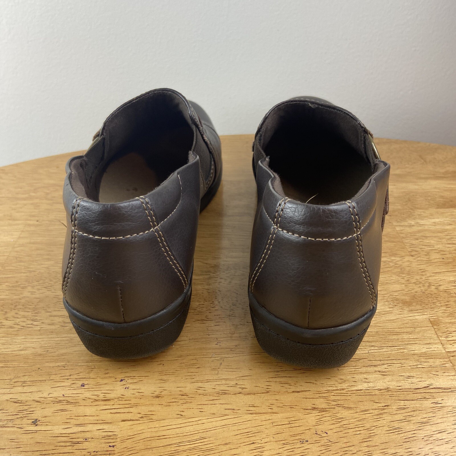как выглядит Clarks Womens Loafers Shoes Size 8 Dark Brown Leather Slip On Comfort фото