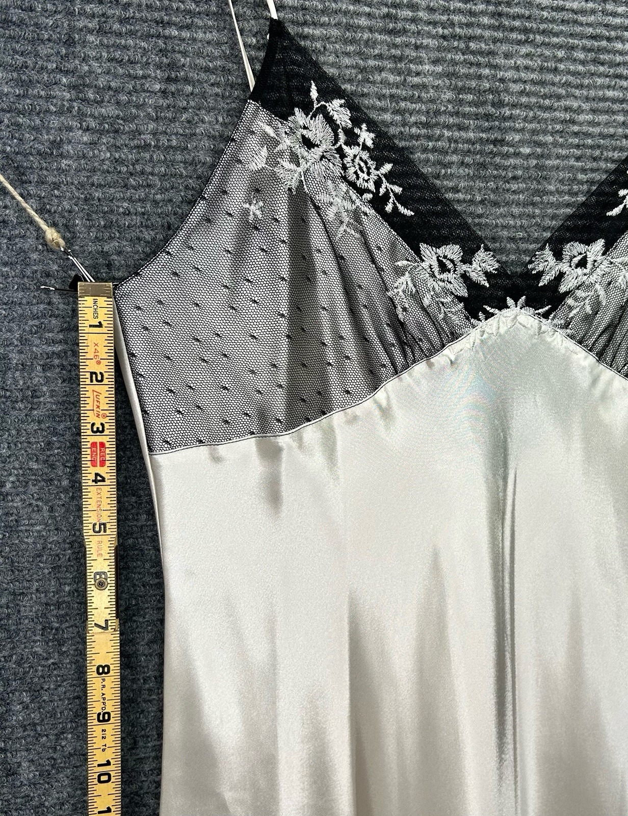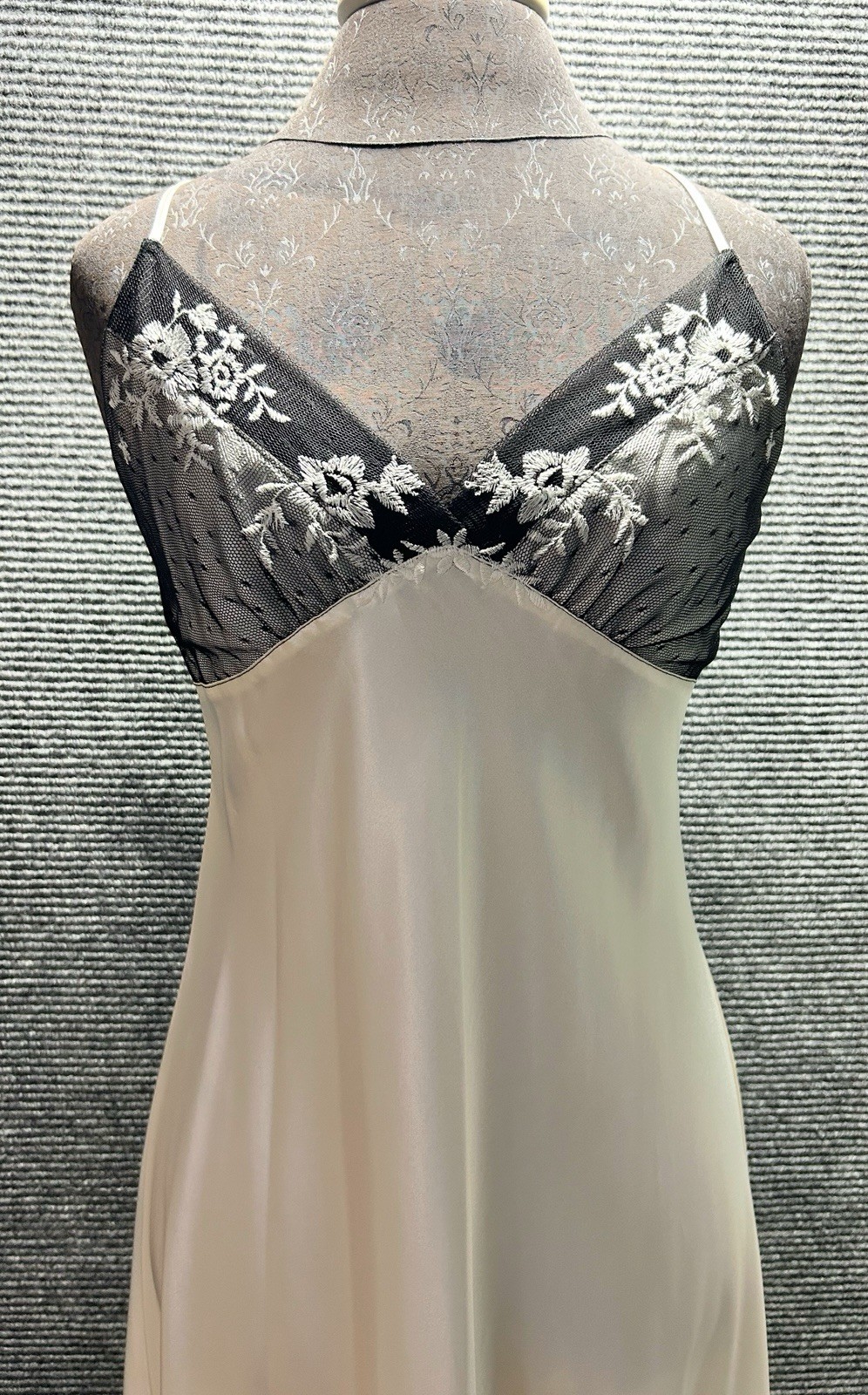 как выглядит Valerie Stevens Ivory Satin Peignoir Set Robe Nightgown Black Lace Size Large фото