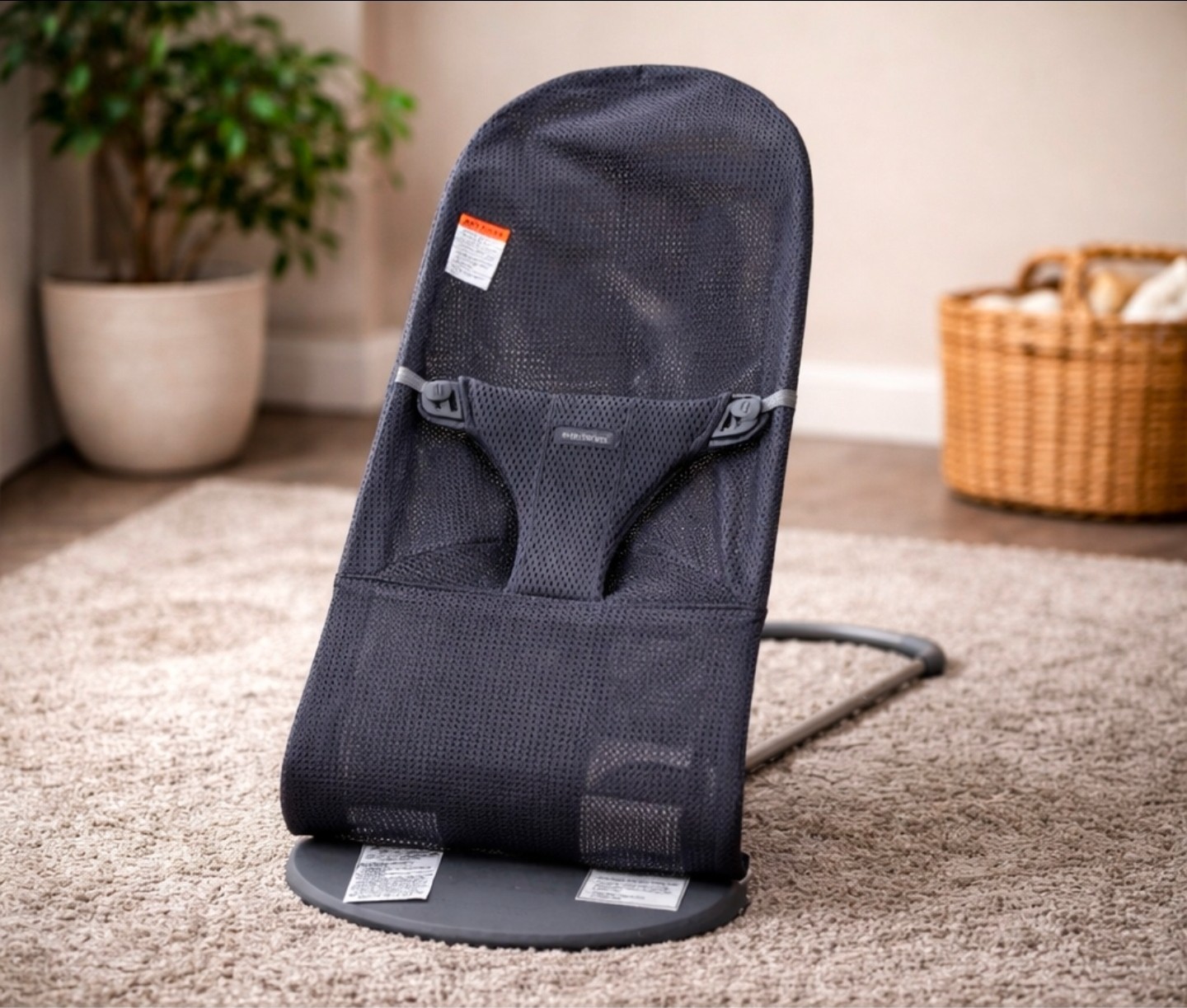 BabyBj rn Balance Soft Bouncer Mesh Lightweight Natural Rocking
