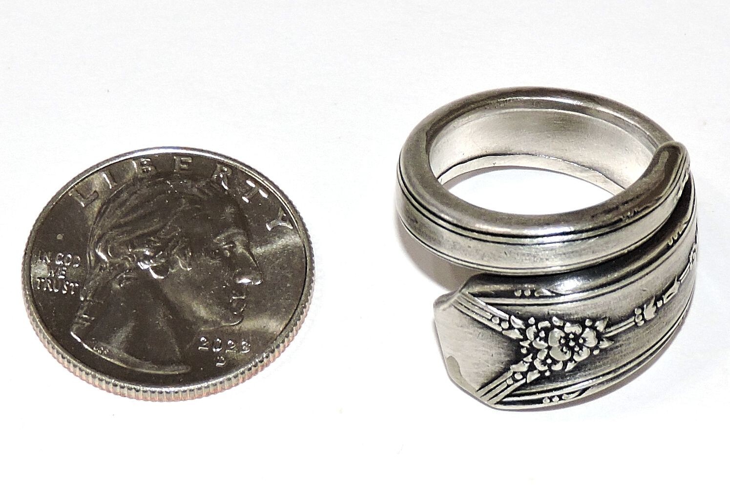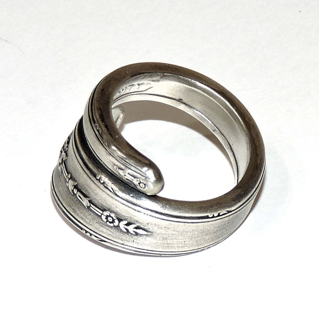 как выглядит Handmade Spiral Spoon Ring Size 8 From Vintage Silver Plated Utensil фото