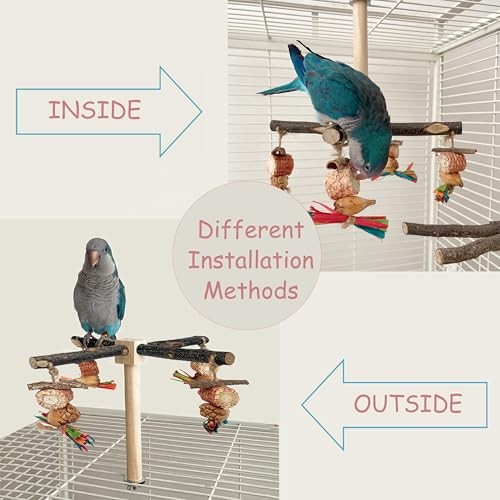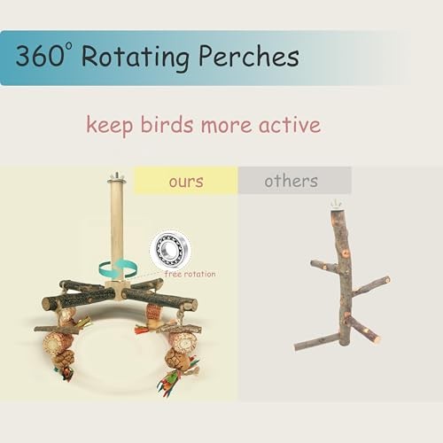 Bird Perch 360 Rotating Perch with Natural Chew Toys - Spinning Bird Toys