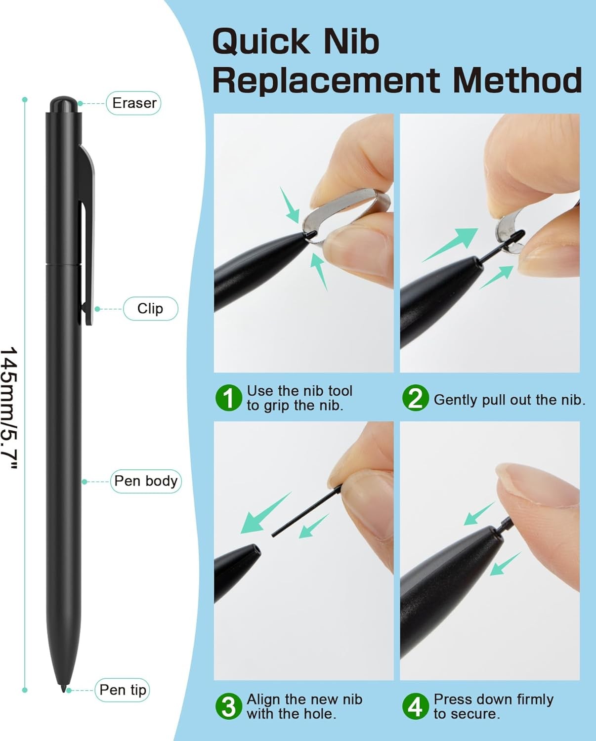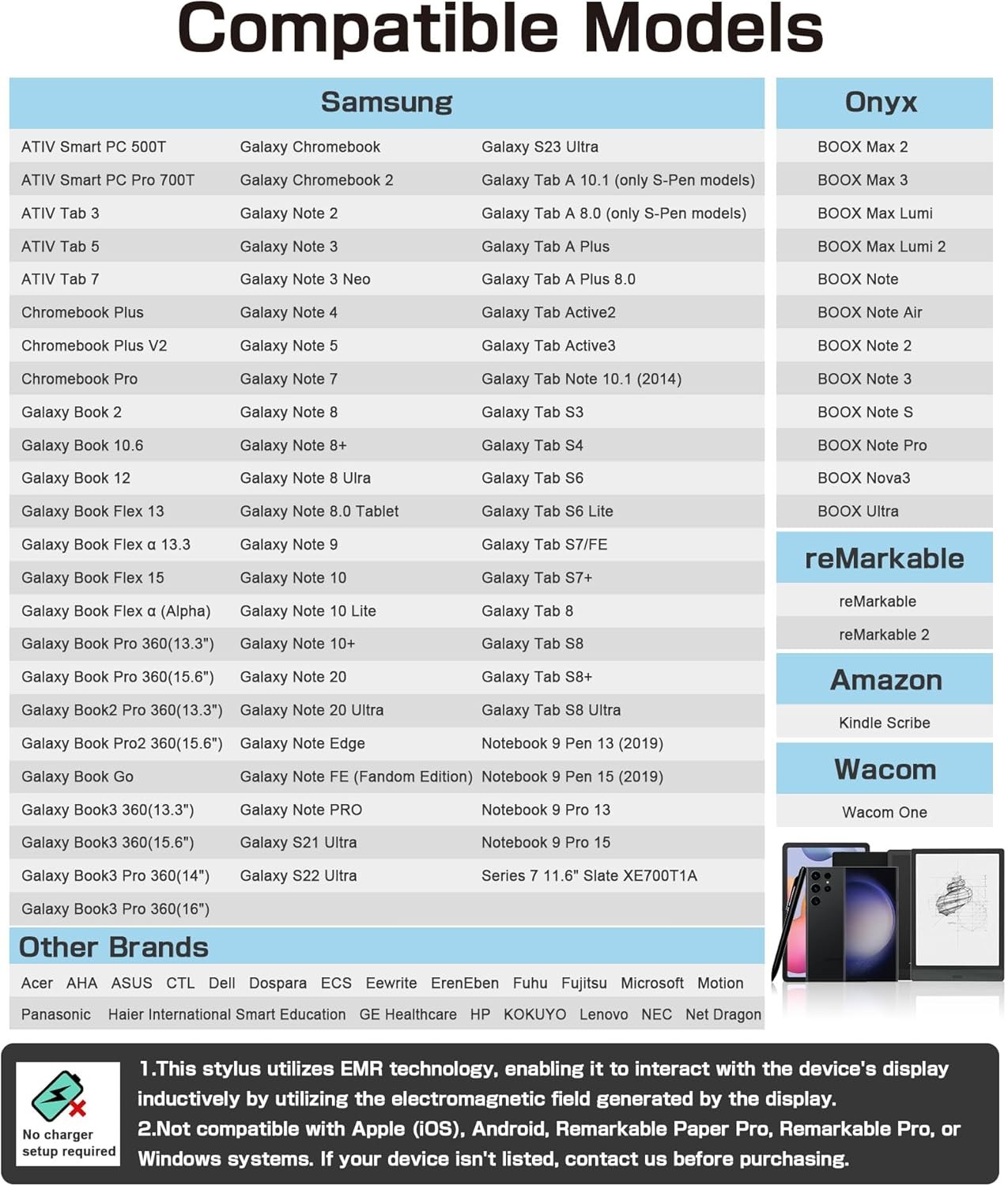 EMR Stylus Digital Pen Palm Rejection Pressure Tilt Eraser Tips