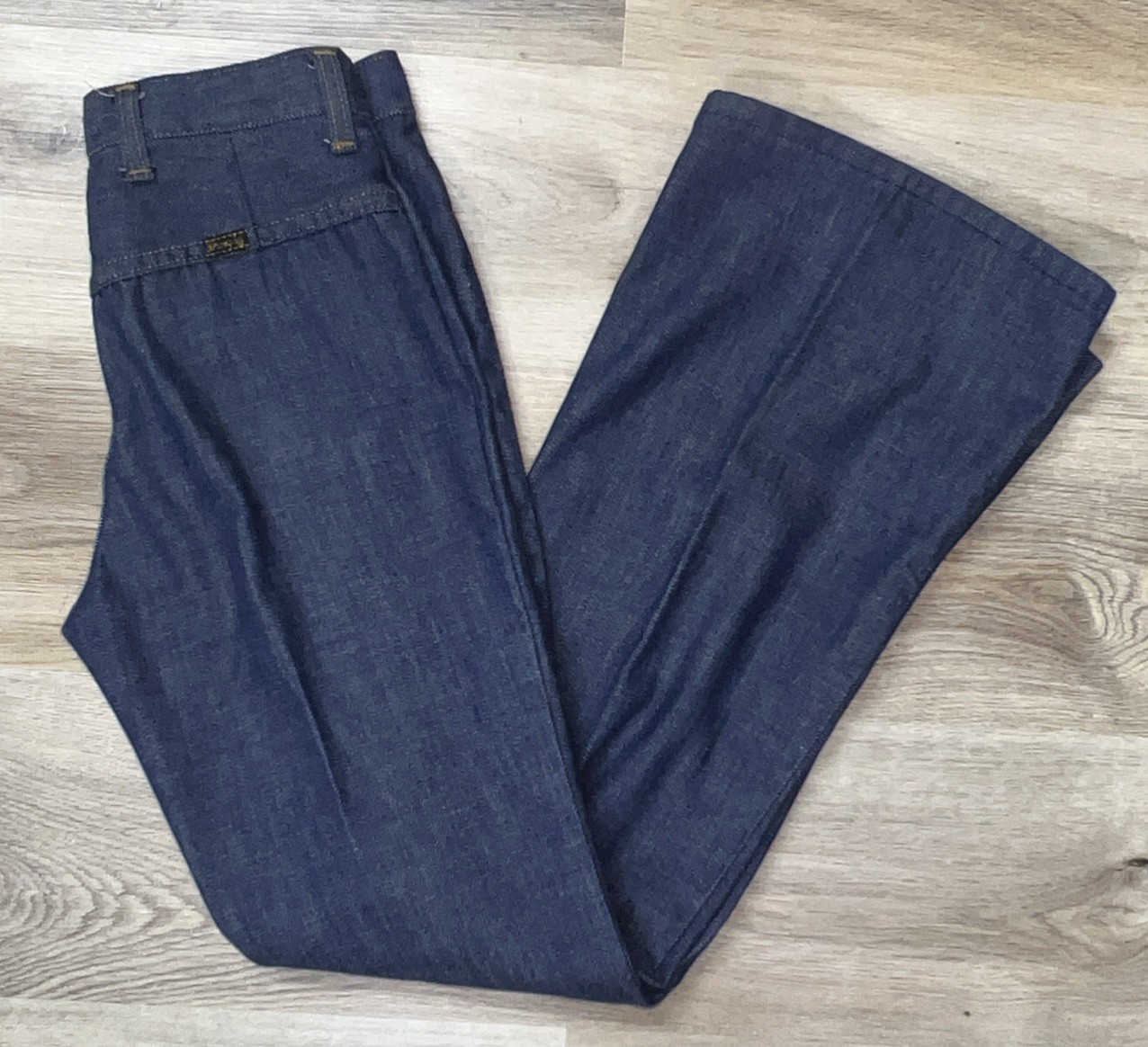 как выглядит 1970 s Vintage Wrangler Jeans Junior Size 7-8 High Rise Flare No Back Pockets фото