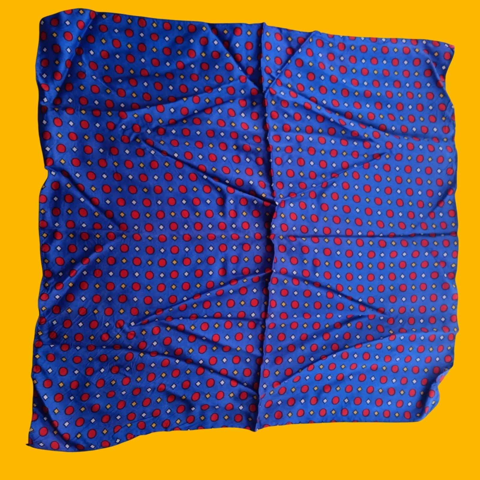 как выглядит Vintage 1960s Square Scarf Mod Polka Dot Diamond Blue Rayon Slinky 20x20" фото