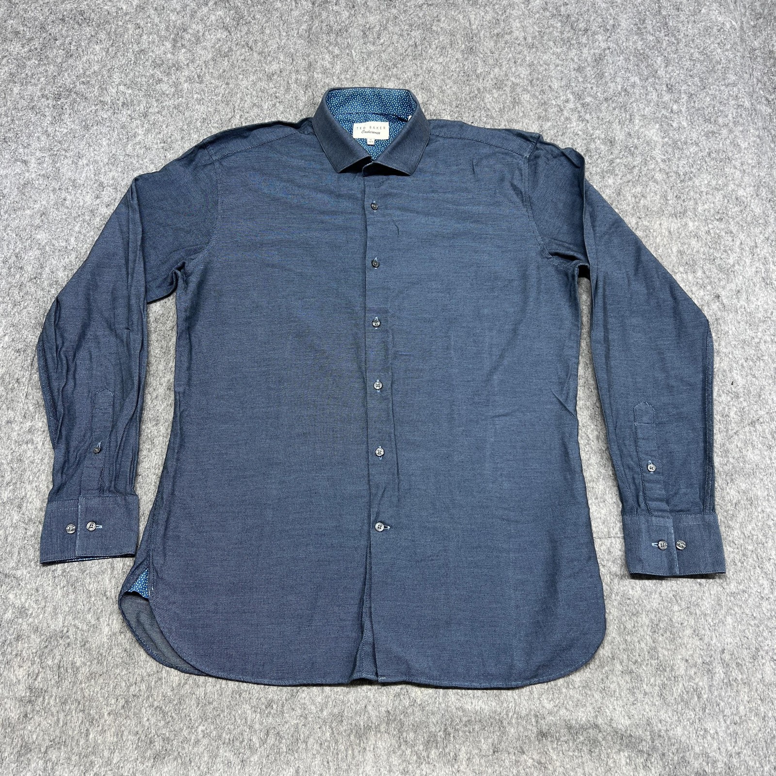 как выглядит Ted Baker Endurance Dress Shirt Mens 16 34/35 Blue Geometric Long Sleeve Casual фото