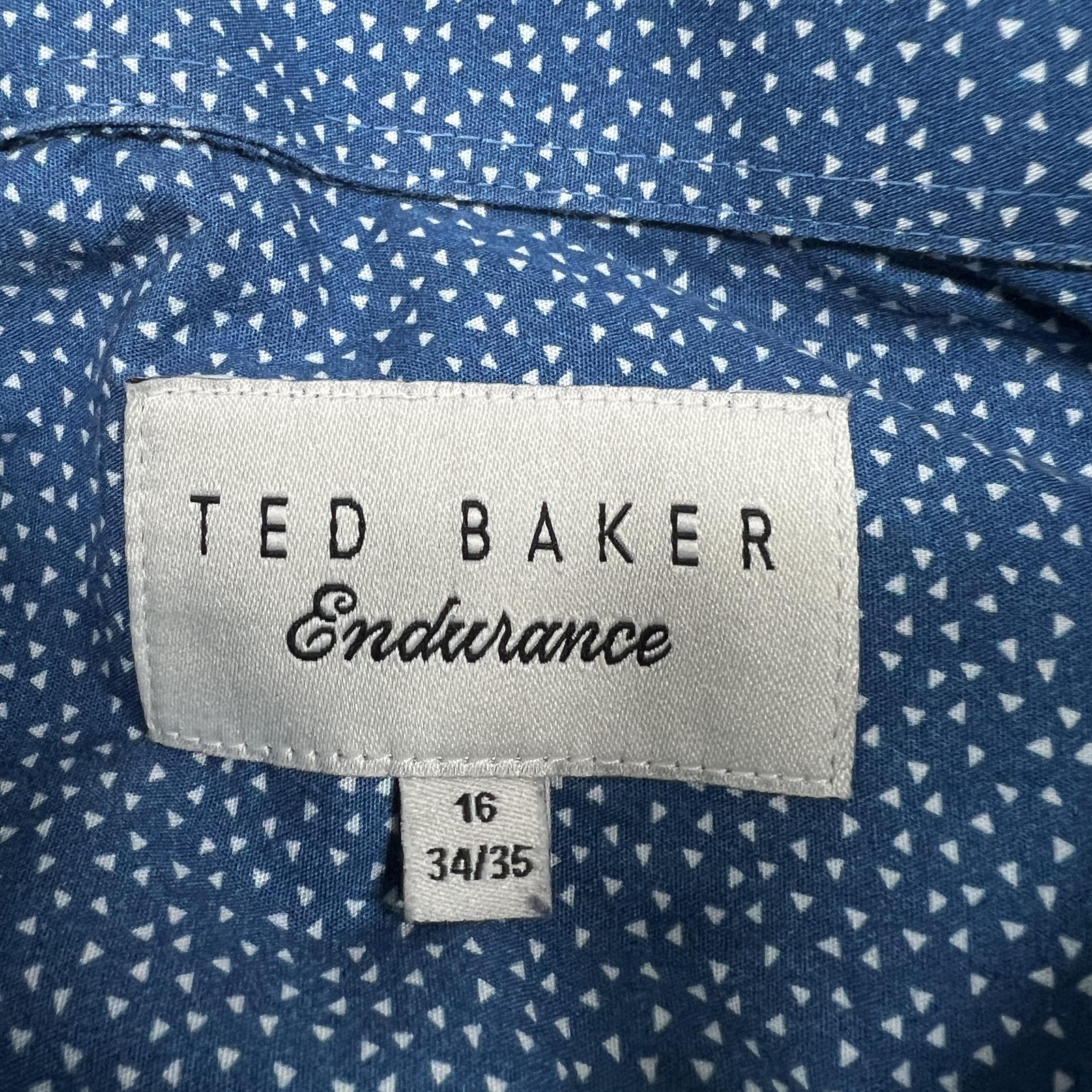 Ted Baker Endurance Dress Shirt Mens 16 34/35 Blue Geometric Long Sleeve Casual