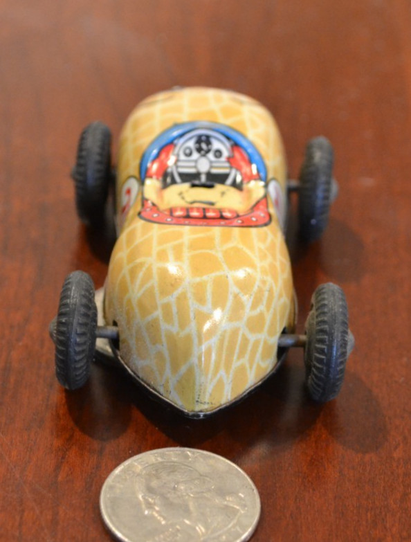 VINTAGE 1969 FRANKONIA JAPAN TINPLATE CLOCKWORK/WIND-UP PEANUT RACER NO.7 READ