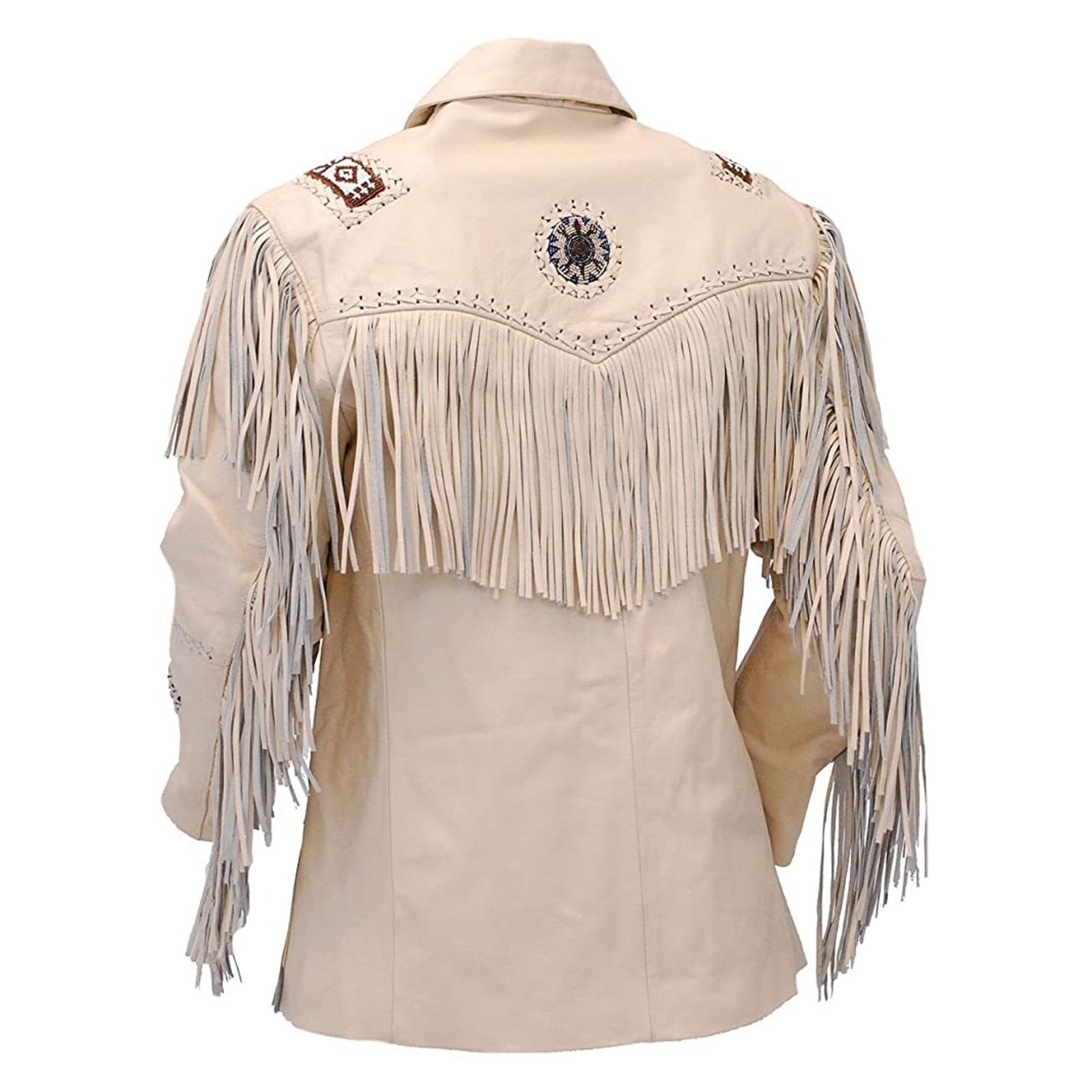 Western Cowboy Jacket Real Suede Leather Fringe Bone Beads Native American Cream