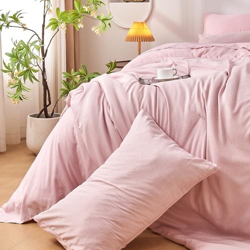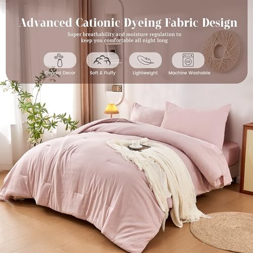 Twin Comforter Set with Sheets 5 Pieces, Pink Twin Comforter Set for College