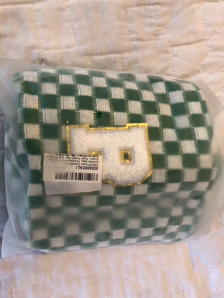 как выглядит Initial "R" Checkered Cosmetic Bag 65292;Personalized Gift for Women фото