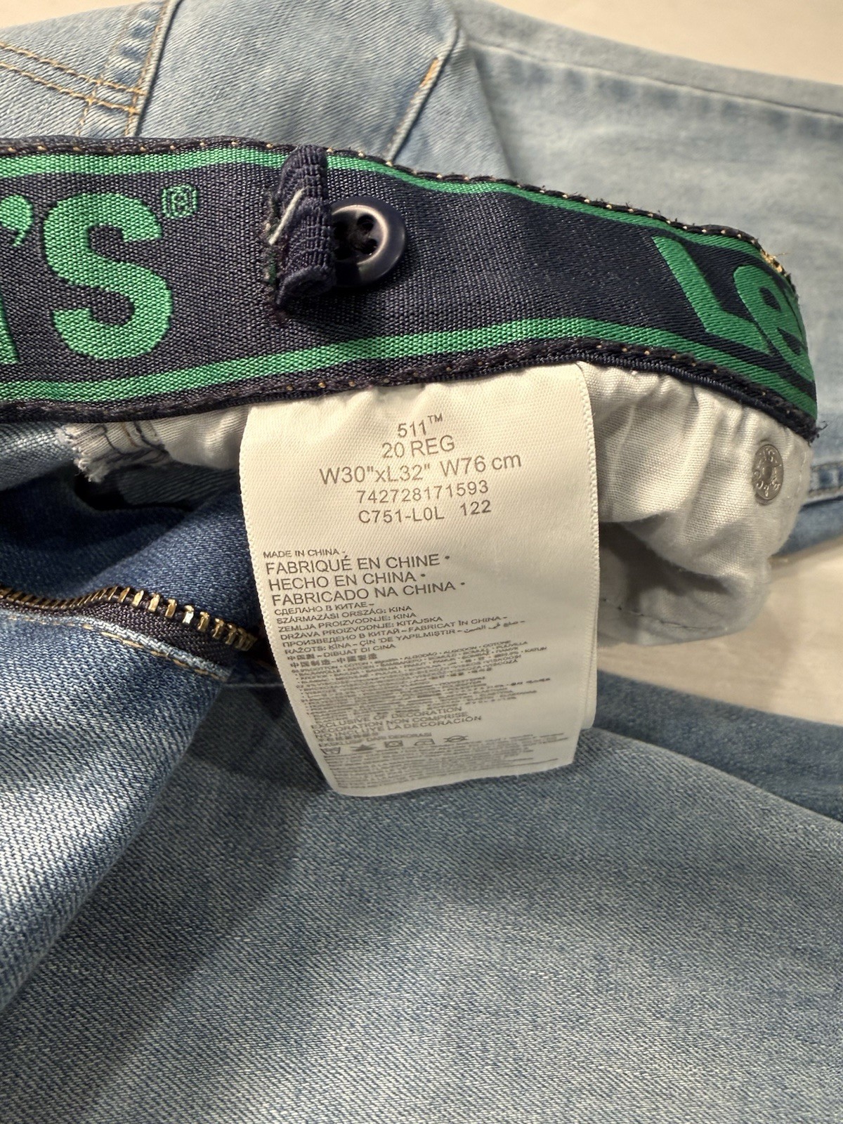 как выглядит Levi s 511 Jeans Size 30x32 Light Blue Wash Distressed Boys Size 20 reg фото