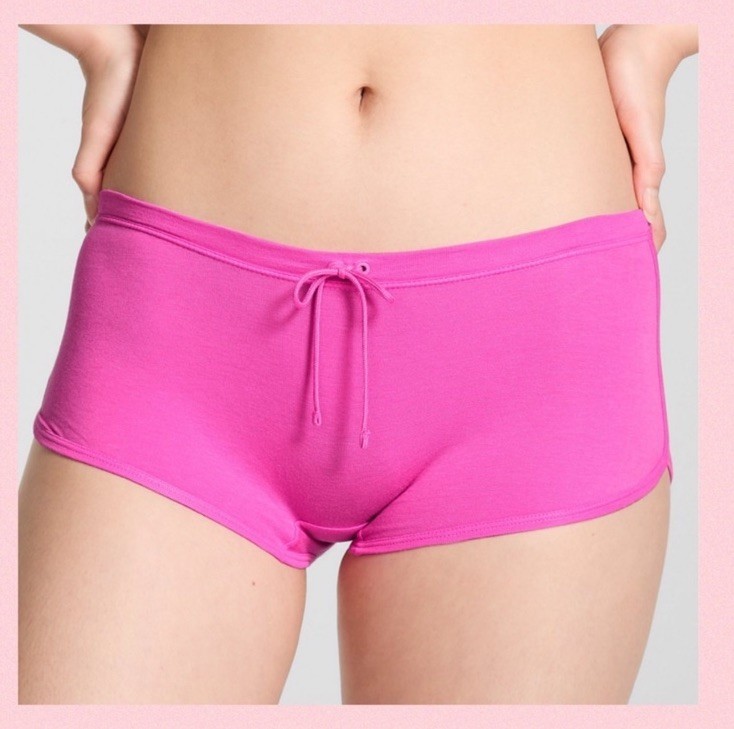 как выглядит Victorias Secret PINK - M Cotton Dorm Boyshort Panty Pink Silver Foil Medium фото