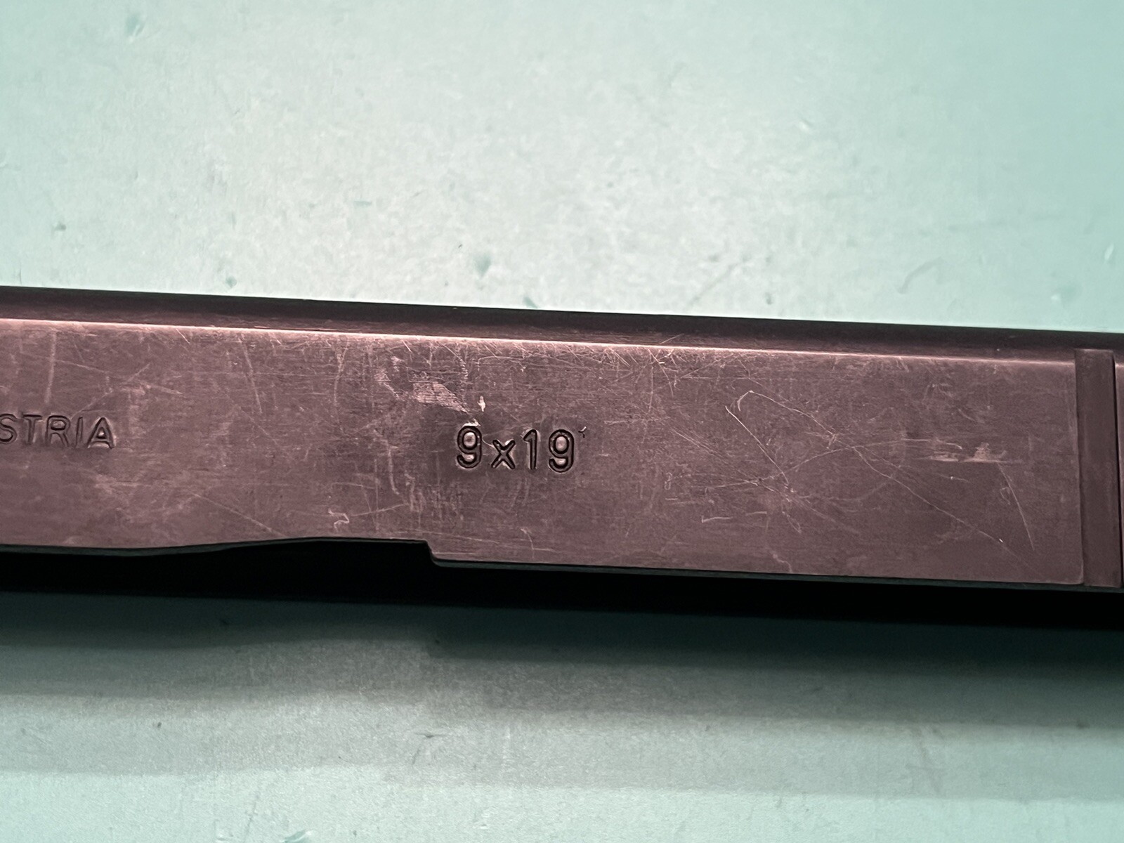 как выглядит USED OEM GLOCK 19 GEN 2 COMPLETE SLIDE BARREL SPRING 9MM PROOF MARKS 1989 GEN 3 фото