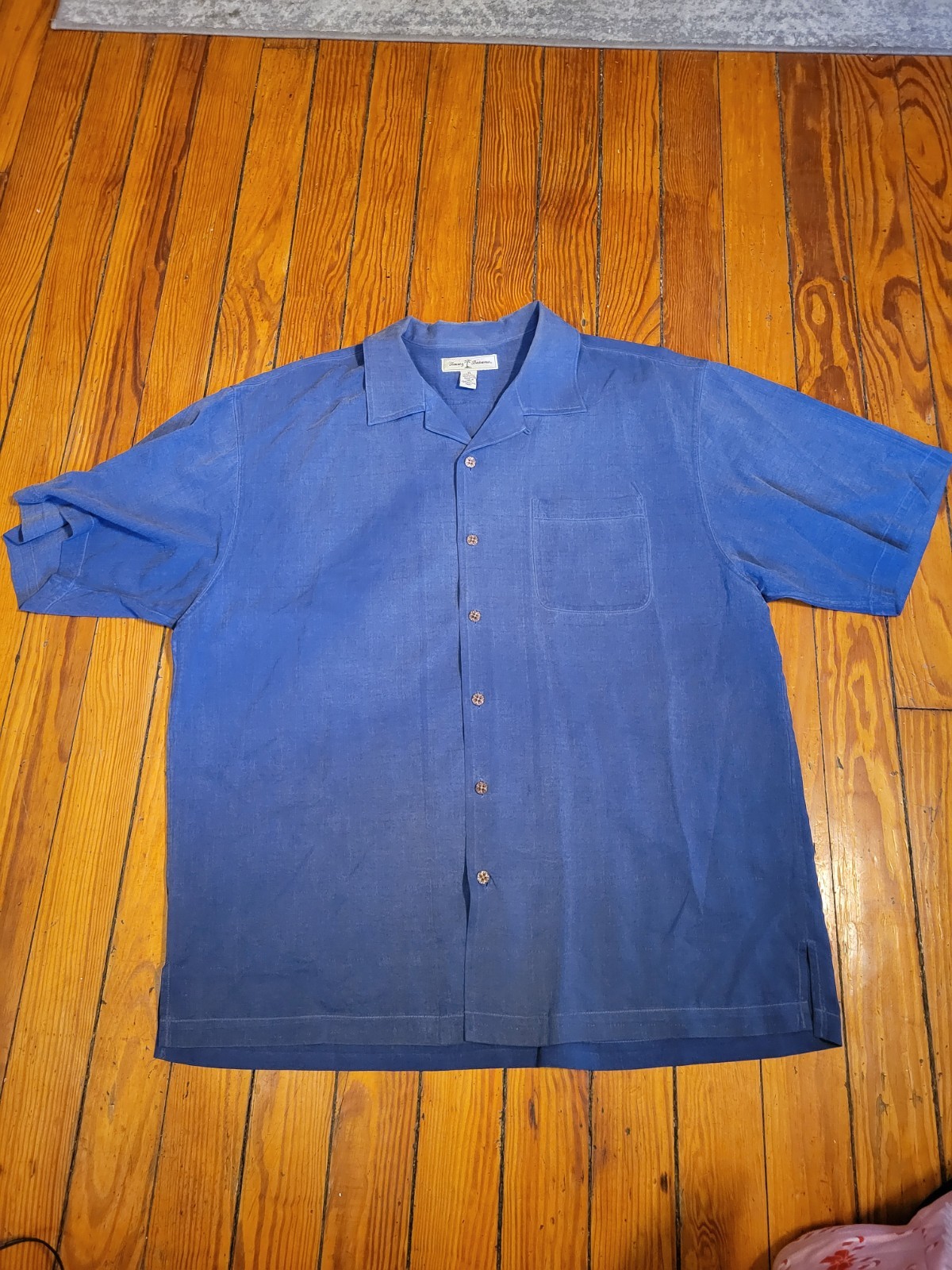 как выглядит Tommy Bahama T Bahama Pinhead Classic Embroidered Silk Shirt Men Button Up XL фото